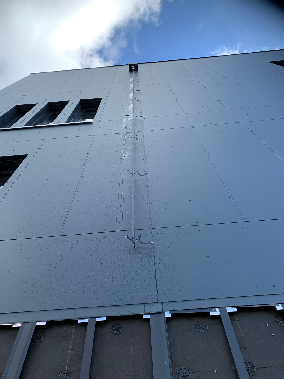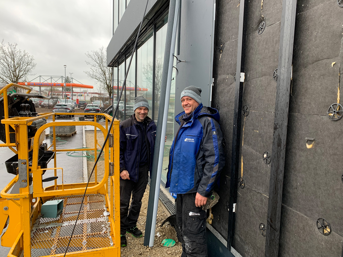 Bei der Befestigung der Kästen an der Fassade standen Sicherheit und Dauerhaftigkeit im Vordergrund. Da die Bauteile nicht nur ihr Eigengewicht, sondern auch potenzielle Wassermengen sowie Winterbelastungen wie Eis und Schnee zuverlässig tragen müssen, kamen die geforderten Befestigungsmittel für schwere Lasten zum Einsatz.
