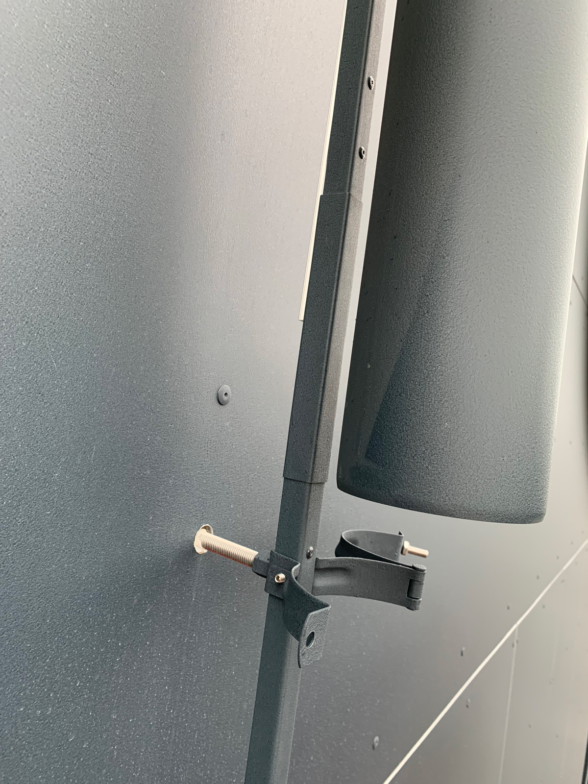 Der Abstand zwischen zwei Rohrschellen wurde auf 1470 mm begrenzt. Dadurch ist sichergestellt, dass sich unter jeder Fallrohrmuffe eine Schelle befindet, welche das Fallrohr zuverlässig gegen ein Abrutschen sichert. Die mittlere Schelle des Fallrohres gewährleistet sowohl die strukturelle Stabilität als auch den exakten, geraden Verlauf der LED-Lichtlinie.