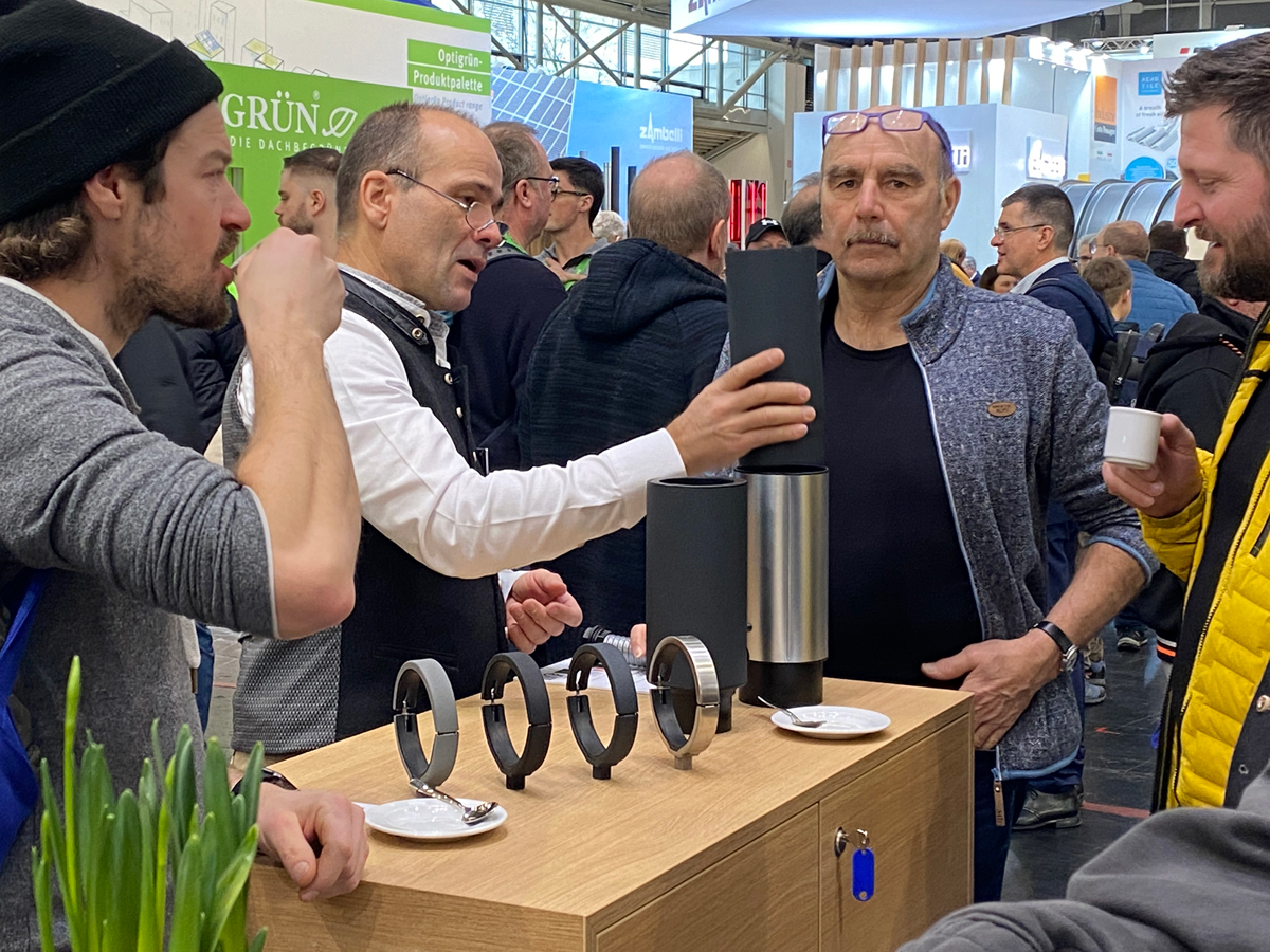 Grömo stellte auf der Messe zudem eine Serie von Design-Flachdach-Wasserfangkästen für die Attika-Entwässerung vor. Die drei Wasserfangkästen in unterschiedlichen Abmessungen ermöglichen eine einheitliche und optisch ansprechende Entwässerung sämtlicher Gebäudeteile. Dank integrierter Notüberlaufschlitze und flexibler Zulaufpositionierung bieten sie eine funktionale Lösung für moderne Bauvorhaben. Verfügbar sind sie in Zink, Aluminium und »Grömo Alustar Anthrazit TX« für Fallrohre NG 80, 100 und 120.