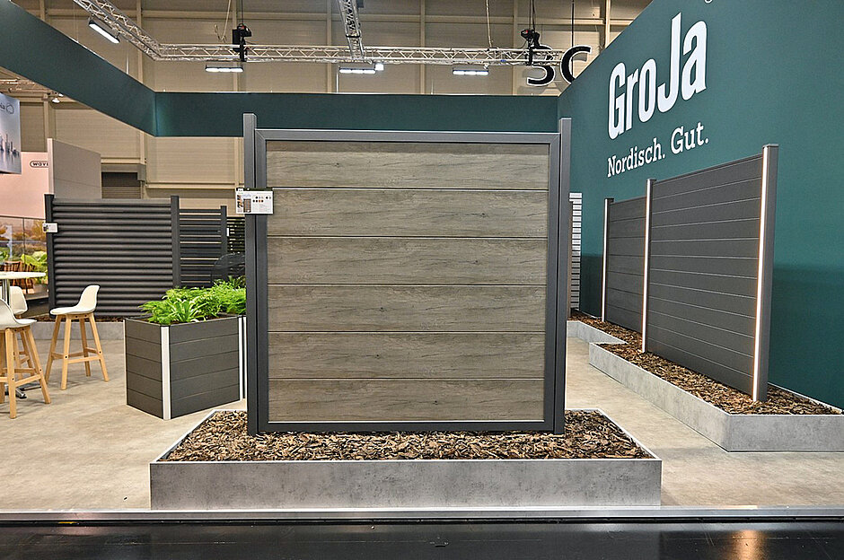 Auf der GaLaBau präsentierte GroJa nun mit »GroJaBasicLine Nova« eine zusätzliche, besonders stabile Produktvariante mit sechs breiten Profilen pro Zaunelement, die in einen eleganten Aluminiumrahmen eingefasst sind. Wie von der »GroJaBasicLine« gewohnt, kann bei den Profilen zwischen acht Dekoren gewählt werden. Darüber hinaus sind Veredelungen mit Dekorfolie möglich. Außerdem ist der Aluminiumrahmen in zwei Farben erhältlich.