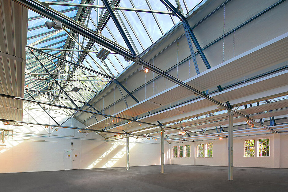 Die neuen Firstverglasungen und Lichtbänder unterscheiden sich zwar optisch nicht von den früheren Ausführungen, wohl aber hinsichtlich ihrer Funktionalität und der Energieeffizienz. Energieeinsparungen von bis zu 30 Prozent sind laut Architektin Sabrina Gronotte realistisch zu prognostizieren. Neben dem Klima- und Ressourcenschutz ist die nachhaltige Verbesserung der klimatischen Bedingungen ein weiterer wichtiger Faktor. So sind die Dachverglasungen mit 26 Öffnungsmodulen ausgestattet, die einfach zu steuern sind und zur bedarfsgerechten Klimatisierung beitragen. Thomas Witt von der Verwaltung der Flottmann-Hallen nennt einen weiteren Vorteil: »Die früheren Werkstatt-Glasfenster waren deutlich weniger transparent als die jetzigen Elemente. Deshalb können wir nun mehr natürliches Tageslicht nutzen, und das ist gerade für Kunstausstellungen sehr gut.«
