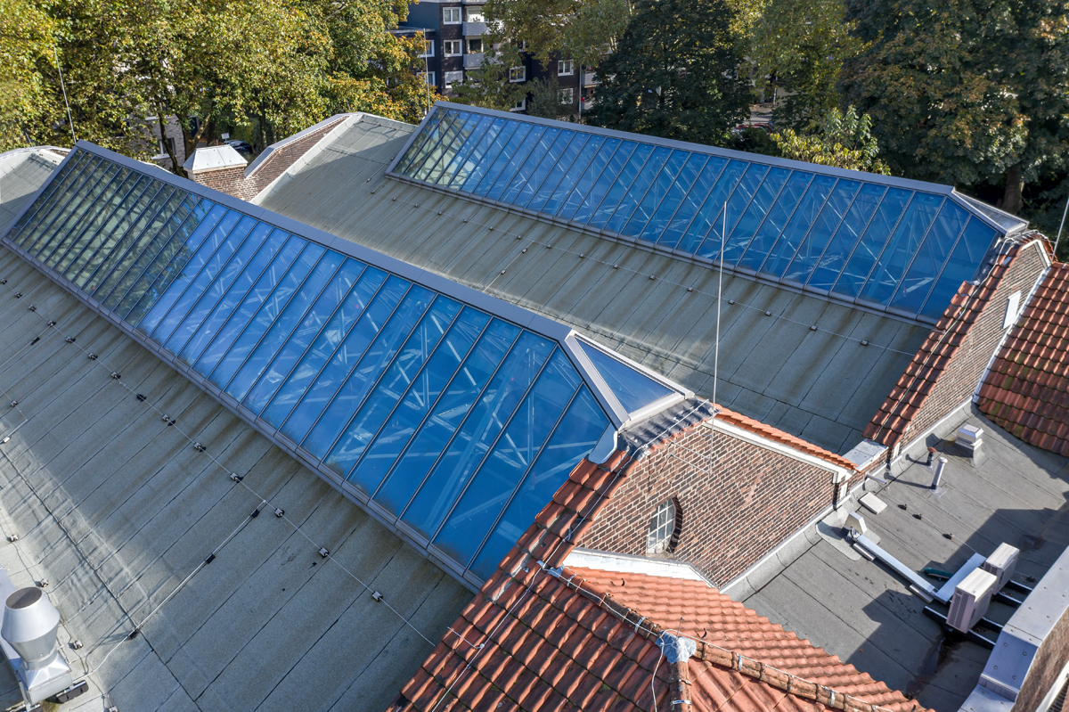 Dank der Fördermittel des Bundes war die Finanzierung der Umbauten (Investitionsvolumen: 2,5 Mio. Euro) gesichert. Die Ausschreibung konnte erfolgen, und Glasolux erhielt den Zuschlag für die Fertigung und Montage von vier großen Firstverglasungen und insgesamt zehn Lichtbändern. Während Glasolux im heimischen Bielefeld an die Planung und Herstellung der Firstverglasungen und Lichtbänder gehen konnte, schritten die Sanierungsmaßnahmen in Herne voran. Das Anbringen der mehrschichtigen Wärmedämmung in den Satteldächern auf einer Fläche von rund 1 400 m² inklusive einer neuen bituminösen Abdichtung gehörte ebenso zu den grundlegenden Aufgaben wie das Schließen der Luftspalten.