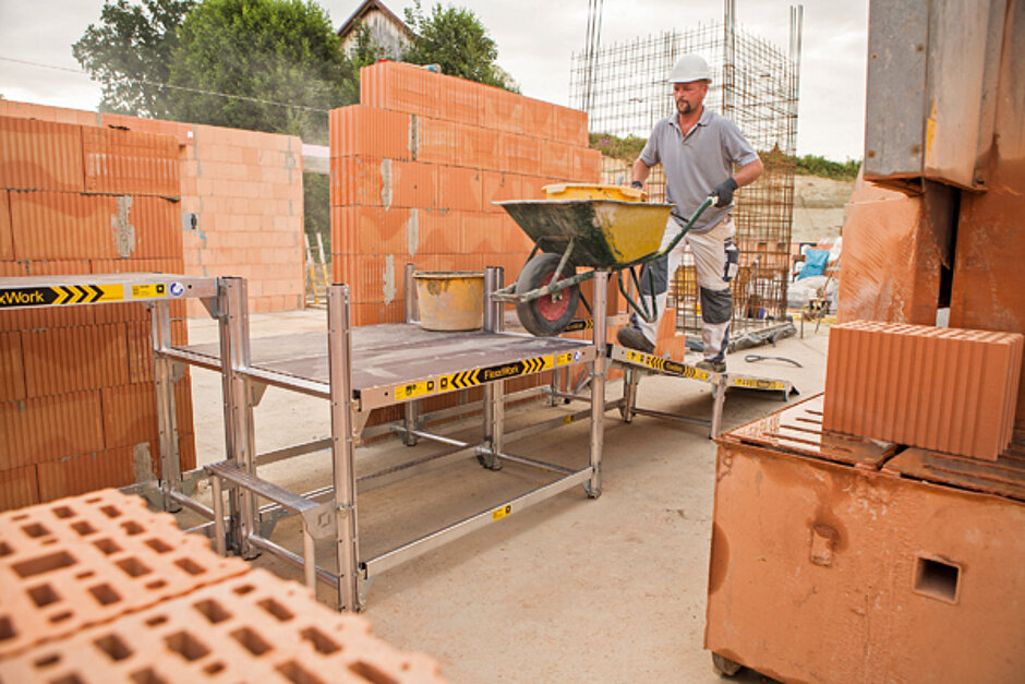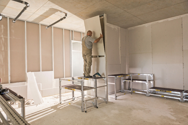 Nicht nur für die Maurer oder Zimmerer im Rohbau, sondern auch für die Spezialisten im Innenausbau wie Fliesenleger, Maler, Stuckateure sowie Profis im Trockenbau oder SHK-Handwerk bietet die »Flexx Work« der Günzburger Steigtechnik sichere Arbeitsbedingungen. Das Sicherheits-Plus wird auch von der Berufsgenossenschaft der Bauwirtschaft (BG Bau) positiv bewertet. Die BG Bau unterstützt ihre Versicherten beim Kauf von Arbeitspodesten und übernimmt 50 Prozent der Anschaffungskosten.