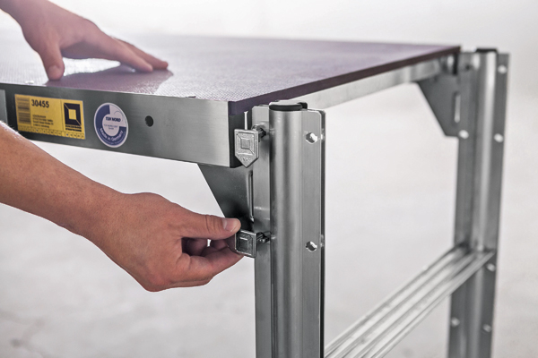 Mit dem neuen Modulsystem »Flexx Work« von der Günzburger Steigtechnik lassen sich zahlreiche unterschiedliche Arbeitslandschaften realisieren. Großflächige Montageflächen sind dabei laut Hersteller genauso möglich wie treppenförmige Aufbauvarianten oder Auffahrrampen für den Materialtransport mit dem Schubkarren.
