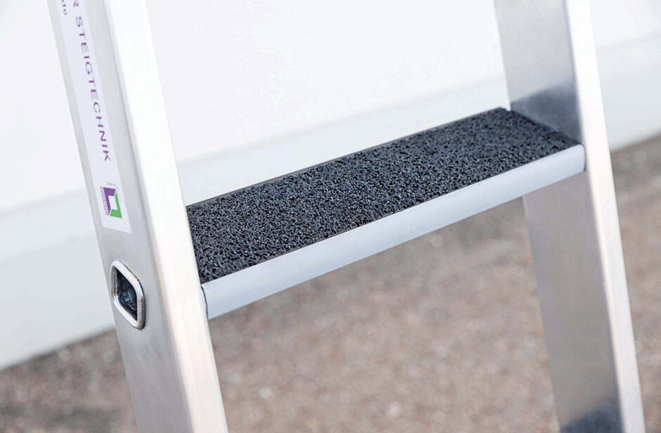 Die neue zweiteilige Stufen-Anlegeleiter R13 ist ausschiebbar und darf aufgrund ihrer verlängerten Holme übertreten werden. Für das Plus an Arbeitssicherheit ist sie laut Hersteller außerdem mit der rutschhemmenden Trittauflage »clip-step R13« ausgestattet. Diese erfüllt sogar die strengen Vorgaben der höchsten Bewertungsgruppe für Rutschhemmung R13 und sorgt somit auch in nassen, ölverschmierten und staubigen Arbeitsbereichen für einen sicheren Tritt und einen komfortablen Stand auf der Leiter. Bestmögliche Rutschhemmung verspricht demnach auch die dreiteilige »Stufen-Glasreinigerleiter R13«, die eigens für die hohen Anforderungen in diesem Arbeitsbereich entwickelt wurde. Beide Neuheiten sind darüber hinaus mit der neuen »Nivello«-Traverse versehen, die am unteren