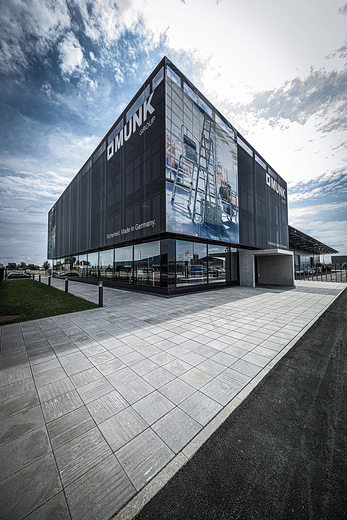 Das neue Produktions- und Sägezentrum am Firmensitz in Günzburg soll künftig für noch mehr „Sicherheit made in Germany" sorgen. Die 5000 m2 große Fertigungshalle ist hochmodern ausgestattet, zum Beispiel mit einer Laserschneidemaschine und einer teilautomatisierten Förderanlage für die Materiallogistik. Mit mehr Fläche und neuen Maschinen optimiert die Munk Group die Effizienz in ihren Fertigungsprozessen und weitet ihre Produktionskapazitäten aus.