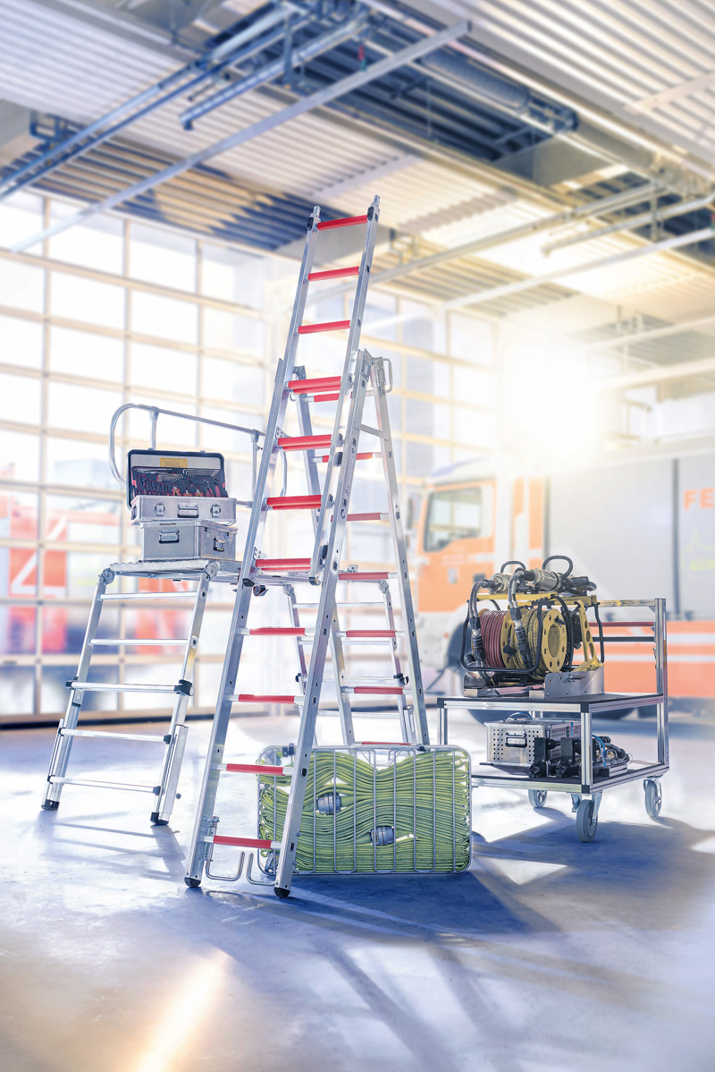 Das Unternehmen war im Jahr 2020 einmal mehr in allen Geschäftsbereichen erfolgreich – im Serienprogramm genauso wie in der Rettungstechnik, bei den Sonderkonstruktionen sowie in den Bereichen Export und Service. Echte Volltreffer waren Innovationen wie das Ein-Personen-Gerüst FlexxTower und die Stufen-Anlegeleitern, aber auch die neue Kleinsthubarbeitsbühne FlexxLift kommt auf dem Markt bereits hervorragend an. Zudem hat die Günzburger Steigtechnik schnell auf die Corona-Pandemie reagiert. So hat sie mobile und stationäre Trennwände für den Infektionsschutz sowie Hygiene-Rollcontainer entwickelt. Letztere sind als mobile Wasch- und Desinfektionsstationen konzipiert.