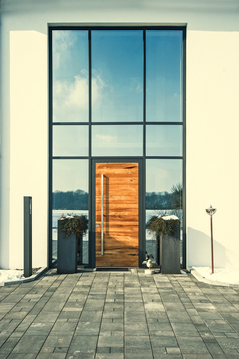 Für die Herstellung der exklusiven Aluminium-Holztüren der »NaturArt«-Serie arbeitet der Qualitätshersteller mit einem Holzlieferanten zusammen, der sich auf Altholz spezialisiert hat. »Uns war wichtig, dass das Holz trotz seines Alters unbelastet und gesundheitlich unbedenklich ist. Unser Lieferant hat dazu eine spezielle Analysemethode entwickelt. Damit kann er feststellen, ob das Altholz wirklich frei von Anstrichen, Lacken und Altöl ist. Bei so einem exklusiven Produkt sind wir das unseren Kunden einfach schuldig«, so Pellkofer.