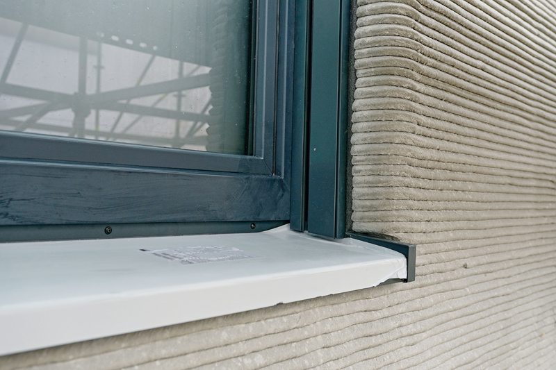 Für die Montage der Fensterlemente nach dem RAL-Montageleitfaden waren ein paar extra Vorbereitungsarbeiten nötig. Das Team von Rupp musste Hohlräume mit Styrodur füllen und die Wände für eine plane Abdichtung und Befestigung mit einem Innenglattstrich versehen. Für den unteren Anschluss der Elemente setzten die Monteure von Gugelfuss spezielle Unterbaudämmprofile und Fensterbankdämmkeile ein. Seitlich erfolgte die Befestigung über Laschenmontage. »Das hat wirklich reibungslos funktioniert und ging toll Hand in Hand«, sagt Rene Dietze, Projektleiter Technik bei Gugelfuss.