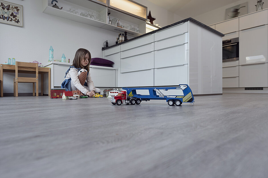 Dass die elektrische Fußbodenheizung von Gutjahr in Sachen Energieverbrauch so gut abschneidet, liegt aber vor allem an ihrem extrem dünnschichtigen Aufbau. „Dadurch müssen keine dicken Estrichschichten aufgeheizt werden. Die Bodenbeläge erreichen schneller die gewünschte Temperatur als bei vergleichbaren Systemen“, so Miseer-Baum. Die Heizkabel sind dabei vollflächig mit Kleber ummantelt. „Dadurch wird nicht zuerst die Unterkonstruktion erwärmt, sondern direkt der Belag. Und durch die spezielle Geometrie der Matte müssen rund ein Drittel weniger Hohlräume aufgeheizt werden als bei anderen.“ Im Durchschnitt benötigt das Gutjahr-System bei gleicher Heizleistung dadurch rund 10 Prozent weniger Energie.