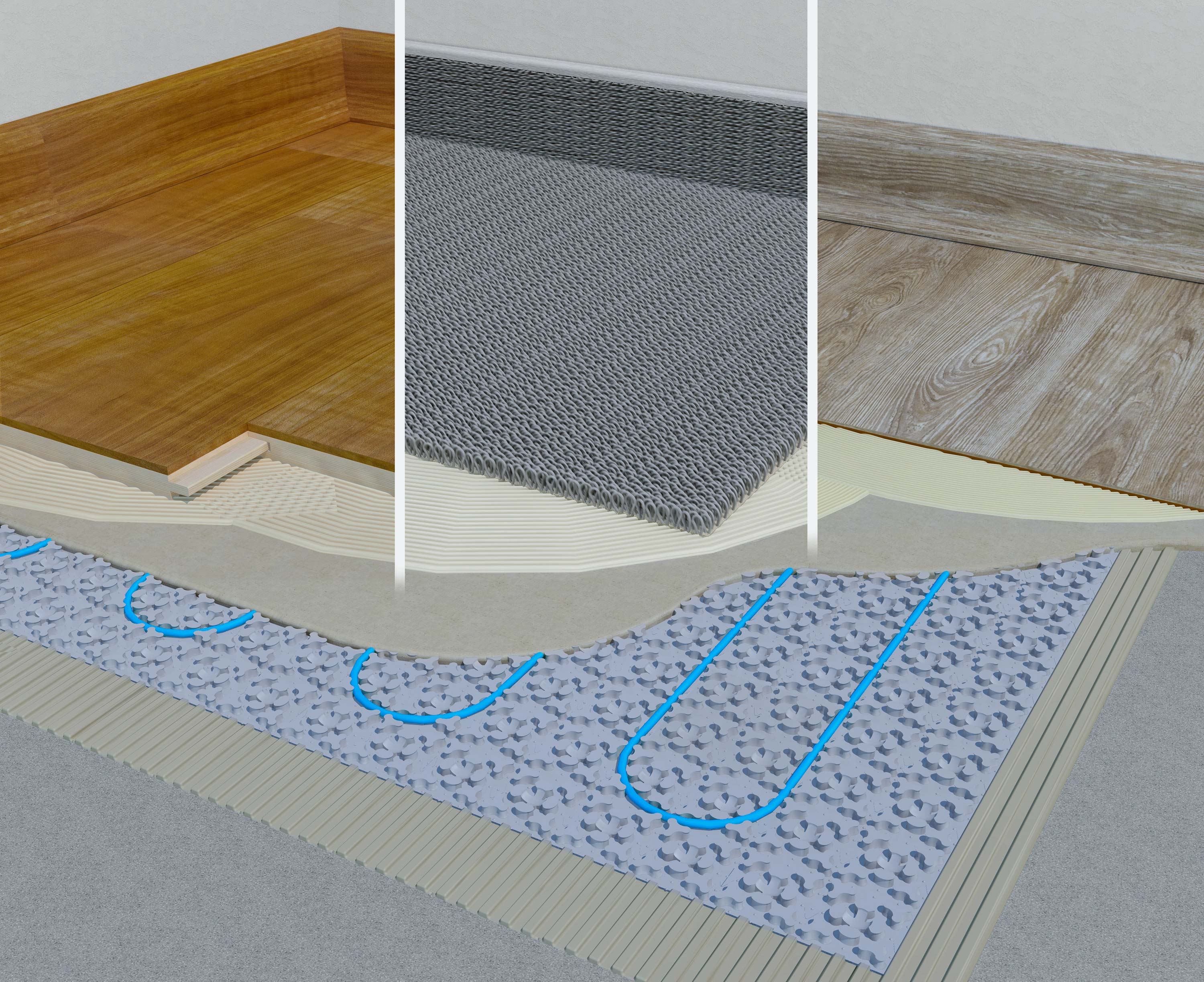 IndorTec TERM-E ist jedoch nicht nur Heizung, sondern gleichzeitig Abdichtung und Entkopplung. Das ist vor allem bei Sanierungsmaßnahmen oft ein entscheidender Vorteil. „Und hier gibt es auch vielfach kritische Untergründe wie gerissene Estriche oder Holzuntergründe, die eine Entkopplung notwendig machen“, sagt Gutjahr-Experte Miseer-Baum. IndorTec THERM-E entkoppelt die Beläge vom Untergrund und gleicht Spannungen aus, genau so wie eine „klassische“ Entkopplungsmatte. Zudem kann das System in Bädern direkt als Verbundabdichtung eingesetzt werden – ein allgemein bauaufsichtliches Prüfzeugnis dafür liegt vor. Neben Keramik und Naturstein kann die Gutjahr-Fußbodenheizung auch mit Kleinmosaik, Parkett, Laminat, Teppichböden und PVC eingesetzt werden.