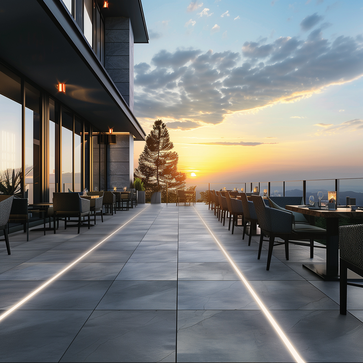 Das LED-Lichtsystem »TerraMaxx Accent« wurde von Gutjahr speziell für die Lichtgestaltung von Außenbelägen entwickelt. Auf privaten Terrassen und rund um den eigenen Pool ist es ebenso einsetzbar wie in der Gastronomie. »TerraMaxx Accent« besteht aus einem Aluminium-Profil, einem UV-stabilen Diffusor mit hoher Lichtdurchlässigkeit und hochwertigen Samsung LED-Stripes – wahlweise mit warmweißem Licht oder mehrfarbig mit Farbwechselfunktion. »So schafft das Lichtsystem ein wohnliches Ambiente und setzt eindrucksvolle Designakzente im Außenbereich«, erklärt Gutjahr-Produktmanager Thomas Römer.
