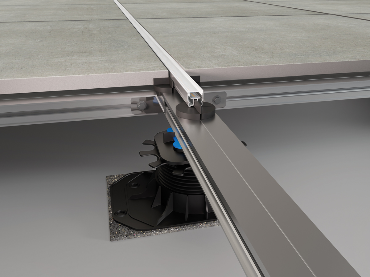 Eine weitere Besonderheit von »TerraMaxx Accent« ist der konstruktive Schutz vor Feuchtigkeit. Bei den meisten Lichtprofilen sind die LED-Stripes am Boden aufgeklebt. Das führt dazu, dass sie im Außenbereich ständig Wasser ausgesetzt sind – das Risiko von Schäden ist dadurch hoch. Gutjahr hat das Problem erkannt und vorgesorgt. »Unser Profil ist so aufgebaut, dass die LED-Stripes erhöht sitzen. Zusätzlich gibt es an den Seiten jeweils einen Drainkanal«, erläutert Thomas Römer. »Eindringendes Wasser wird über diese Drainkanäle abgeführt, und die LED-Stripes sind vor Feuchtigkeit geschützt.« Dabei ist das LED-System für aufgestelzte Beläge auf dem »TerraMaxx RS«-Rahmensystem und »TerraMaxx TSL«-Stelzlagern ebenso geeignet wie für die Verlegung auf Drainmörtel mit den Flächendrainagen »AquaDrain EK« und »AquaDrain HU-EK«.