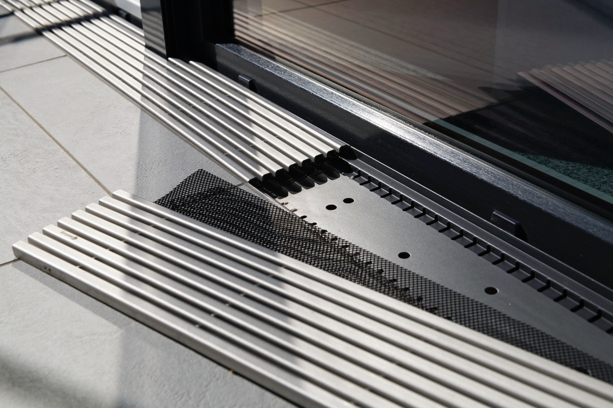 Das gilt auch für die Übergänge auf Balkonen und Terrassen. Allerdings sind hier die technischen Herausforderungen groß. »Maßgeblich ist dabei die DIN 18040 für barrierefreies Bauen – und natürlich die aktuellen Abdichtungsnormen«, sagt Johann. Besonders die DIN 18531, denn sie erlaubt deutlich geringere Türanschlusshöhen – vorausgesetzt, die dauerhafte Entwässerung des anfallenden Wassers im Türbereich ist sichergestellt.