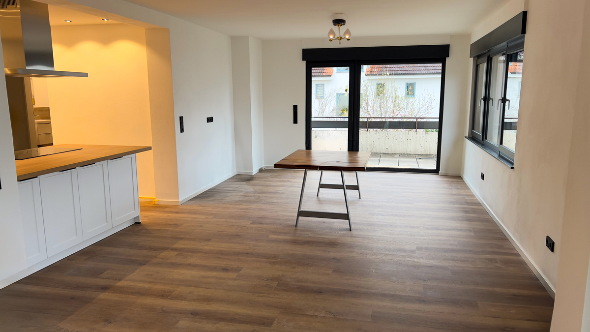 Seit Ostern 2024 lebt die Familie in ihrer stilvoll sanierten Wohnung, in der alles den Vorstellungen entspricht – Heizung inklusive. Aufgrund des wechselhaften Wetters wurde die neue Fußbodenheizung bereits kurz nach dem Einzug eingeweiht und für gut befunden. Vor allem die beiden Kinder lieben es, auf dem warmen Boden zu spielen.