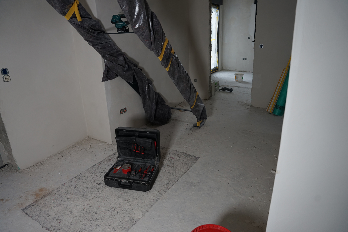 Doch die Anforderungen an das Heizsystem waren nicht ohne. Die wichtigste: Es sollte möglichst energiesparend sein. Hinzu kam, dass die Aufbauhöhe – wie bei Sanierungen oft der Fall – sehr niedrig war. »Sie betrug nur rund 4 cm. Also kam sowie nur ein besonders dünnschichtiges System in Frage«, ergänzt Miseer-Baum. Zudem sollte ein Trittschallschutz eingebaut werden, weil die Wohnung im ersten Stock liegt. Und zu guter Letzt sollte der Einbau der Fußbodenheizung möglichst schnell über die Bühne gehen, auch weil davon viele der weiteren Maßnahmen abhingen.