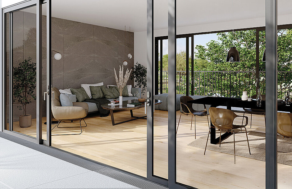 Die neuen Gutjahr-Gitterroste kommen ganz ohne umlaufenden Rahmen aus. Das Ergebnis: ein hochwertiges Erscheinungsbild. Die verzinkten Gitterroste erinnern jetzt optisch an Edelstahl. Insgesamt entsteht ein sauberer Übergang zum Belag. »Ein rahmenloser Gitterrost wirkt ruhiger im Fugenbild und lässt sich optisch unauffällig integrieren. Das ist besonders bei modernen Terrassen- und Fassadenanschlüssen gefragt«, sagt Gutjahr-Produktmanager Thomas Römer.