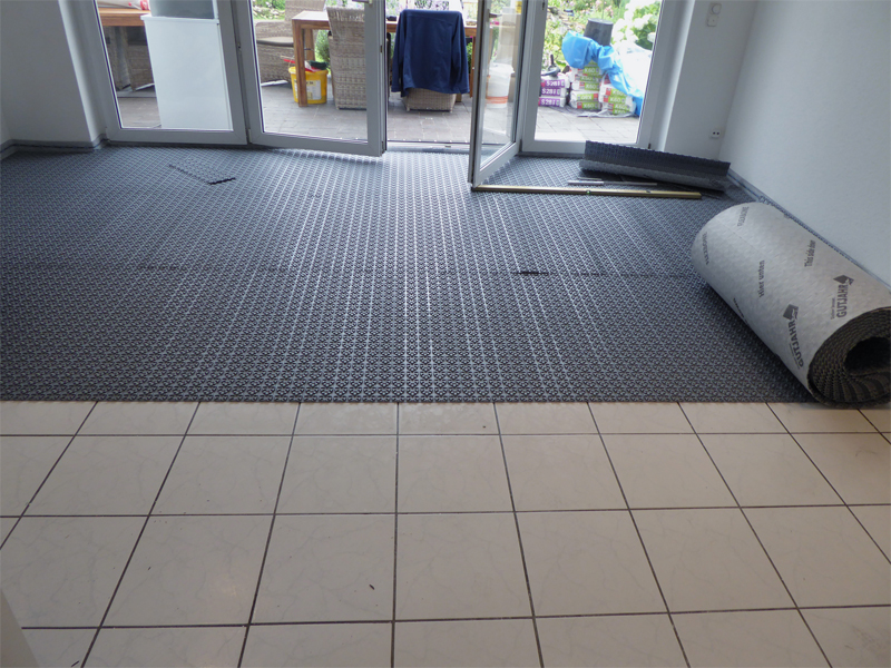 So war es auch bei der Sanierung im Eigenheim in Diekholzen. Dank der 3-in-1-Lösung konnte alles aus einer Hand erledigt werden. Der Verarbeiter benötigte, unterstützt von einer Hilfskraft, nur vier Tage für den Einbau des Heizungssystems und die Sanierung der 28 Quadratmeter großen Fläche. Lediglich den Anschluss an das Stromnetz musste ein Elektriker durchführen. Für den Bauherrn war die zügige Sanierung ein Segen, denn der Zeitplan war ausgesprochen eng: „Die Vorarbeiten waren ins Stocken geraten. Bis zum Liefertermin der neuen Küche standen deshalb nur noch maximal fünf Tage für den Einbau der Fußbodenheizung und die Verlegung des neuen Belags zur Verfügung.“