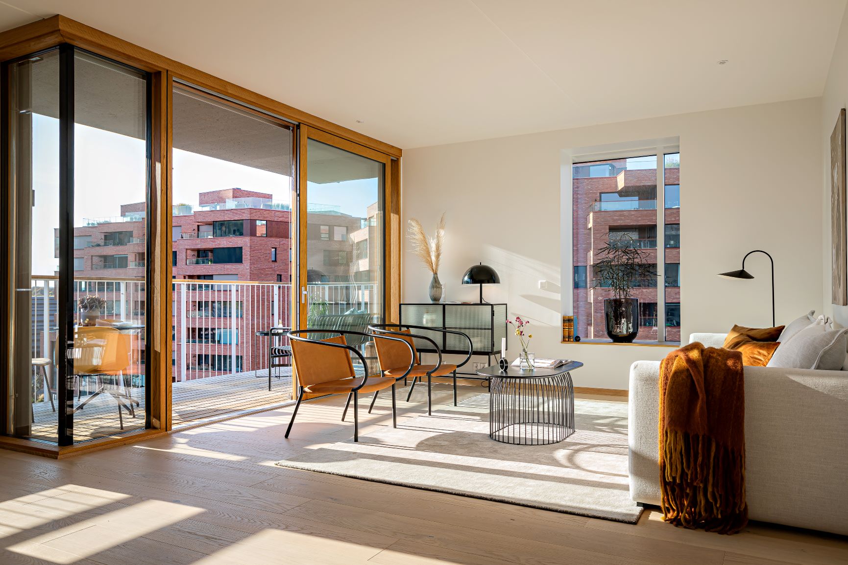 Nicht nur die äußere Gestaltung der Gebäude ist spektakulär, auch die Grundrisse und die Aufteilung der Apartments und Wohnungen sind Teil des absolut innovativen Wohnkonzepts. Dass in dieser Top-Lage auch die Innenausstattung der Wohnungen von höchster Qualität ist, versteht sich von selbst. Die norwegische HARO Handelspartner-Niederlassung konnte einen wichtigen Teil dazu beitragen, denn die Wohnräume sind zum größten Teil mit HARO Parkett Landhausdiele der Serie 4000 in den Farben Sandgrau und Lichtweiß ausgestattet. Insgesamt wurden 25.000 Quadratmeter HARO Parkett verlegt.