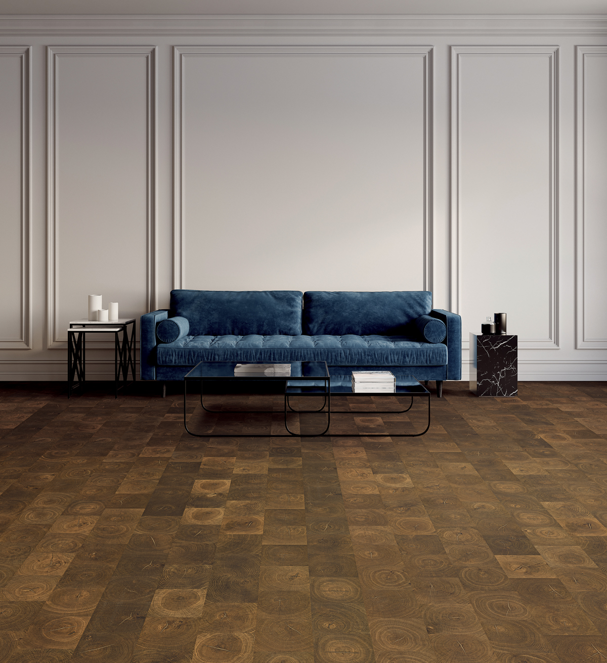 Die quadratischen Carré-Elemente des Parketts »Carré«, die lebendige Textur der sichtbaren Jahresringe und die markante Stirnholzmaserung erzeugen ein unverwechselbar spannendes Flächenbild. Die charakteristische Optik der Jahresringe verleiht jedem Raum ein Gefühl von Struktur, Tiefe und vor allem hochwertiger Exklusivität. Ob in modernen Wohnkonzepten oder klassischer Architektur – »Haro Parkett Carré« setzt laut Hersteller ein stilprägendes Statement.