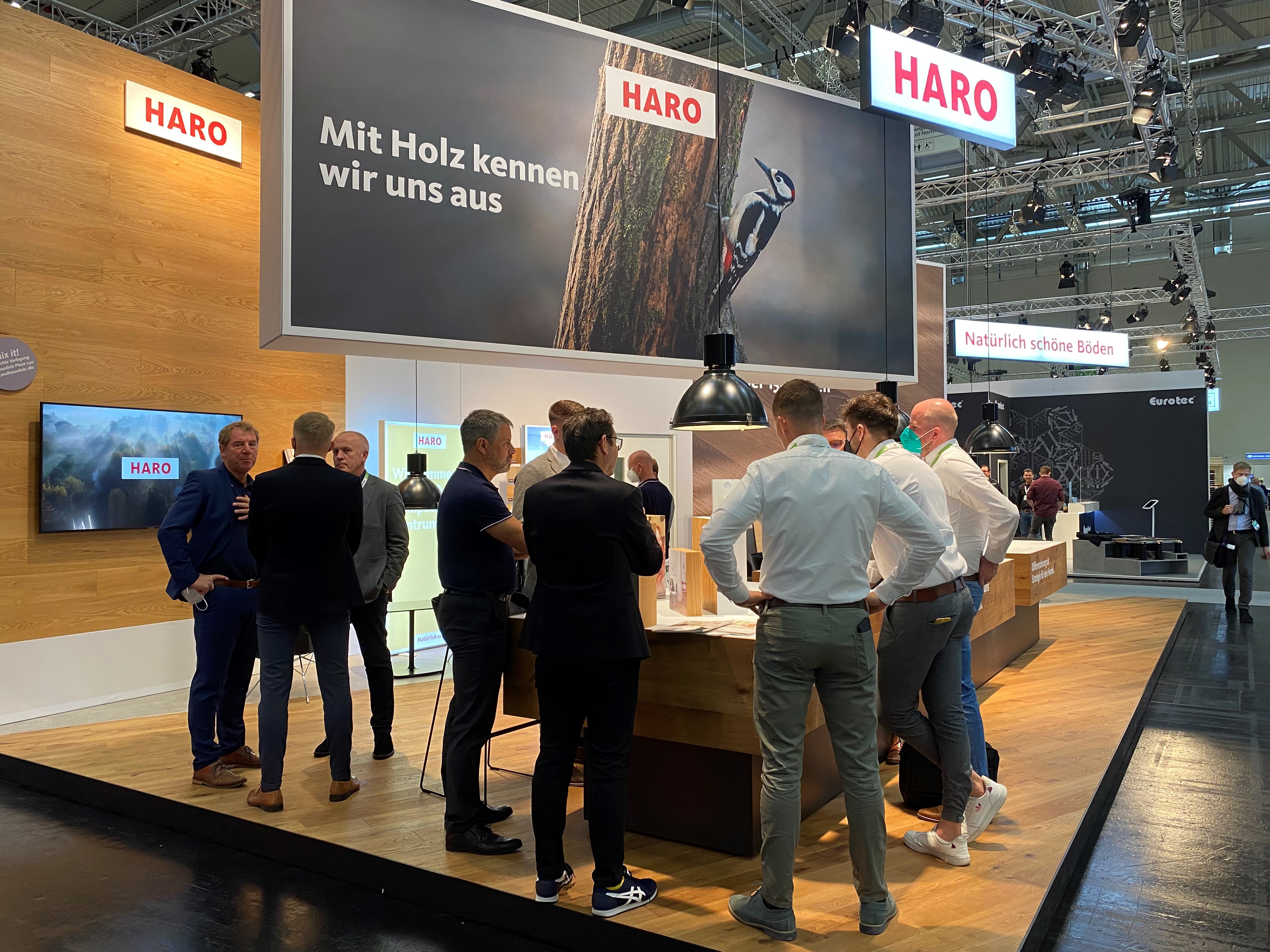 Den Fokus seiner Messepräsentation legte Hamberger Flooring neben der neuen silk Oberfläche bei Parkett und einem neuen PoS Präsentationsmodul, das das Verkaufen deutlich vereinfacht, auf den Neuauftritt der Marke HARO und freute sich über die positive Kundenresonanz.