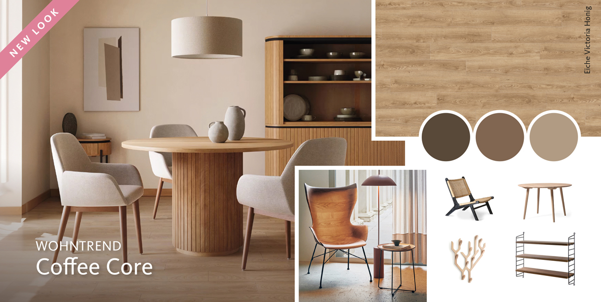 Immer mehr Menschen legen Wert auf eine zeitgemäße und individuelle Gestaltung der eigenen vier Wände, die sie auch regelmäßig neu in Szene setzen. Wohntrends wie »Peach Fuzz«, »Coffe Core«, »Neues Landhaus« oder »Japandi« machen Lust das eigene Zuhause neu zu gestalten. Influencerin Katharina Kammler hat passend zu diesen aktuellen Wohntrends acht »Disano« Designböden »WaveAqua« kuratiert, mit denen sich eine Renovierung laut Hersteller schnell durchführen lässt.