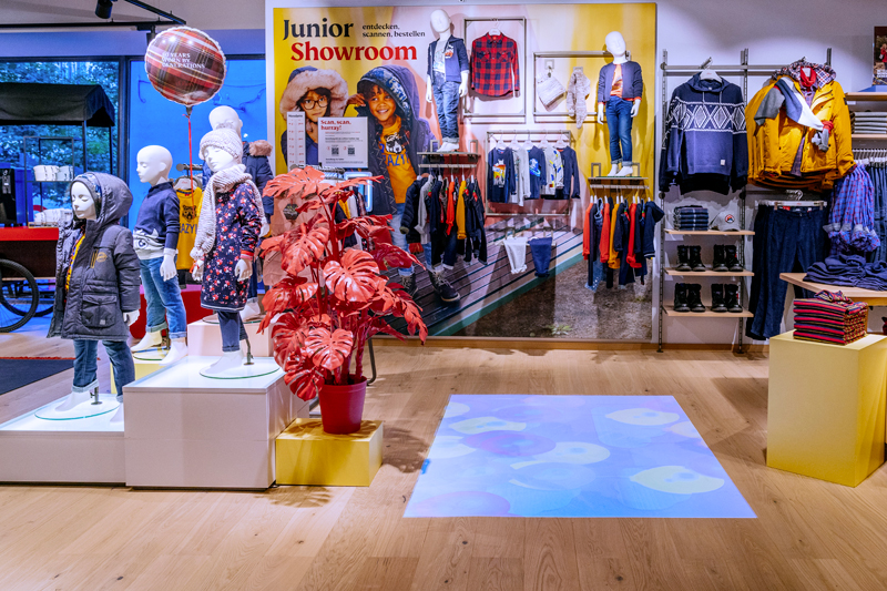 Ein neues Einkaufserlebnis erwartet den Kunden schon im Ein-gangsbereich: auf einer großen LED-Wand werden Kollektionen und Imagefilme gezeigt, auch interaktive Spiele warten darauf, gespielt zu werden. Dahinter öffnet sich die s.Oliver Welt mit den verschiedenen Marken auf einer 1.160 m² großen Fläche.
