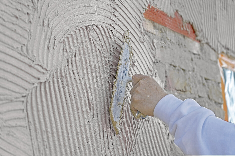 Ein weiteres Alleinstellungsmerkmal des »Dieplast 868 Allstar Light« ist die Möglichkeit, nach der Armierungslage mit dem gleichen Material den Oberputz herzustellen, sogar bis in den Sockelbereich. Seine hohe Schlagfestigkeit von ≥ 10 Joule ist nicht nur am Sockel von Vorteil, sondern sorgt auf der ganzen Fassade für eine herausragende Hagelfestigkeit und Dauerhaftigkeit. Aufgrund seiner Leichtigkeit ist der Klebe- und Armierungsmörtel leicht zu verarbeiten und überzeugt mit einem geringen Verbrauch. Durch sein niedriges Eigengewicht lassen sich auch schwierige Stellen, zum Beispiel über Kopf, komfortabel verputzen und armieren.