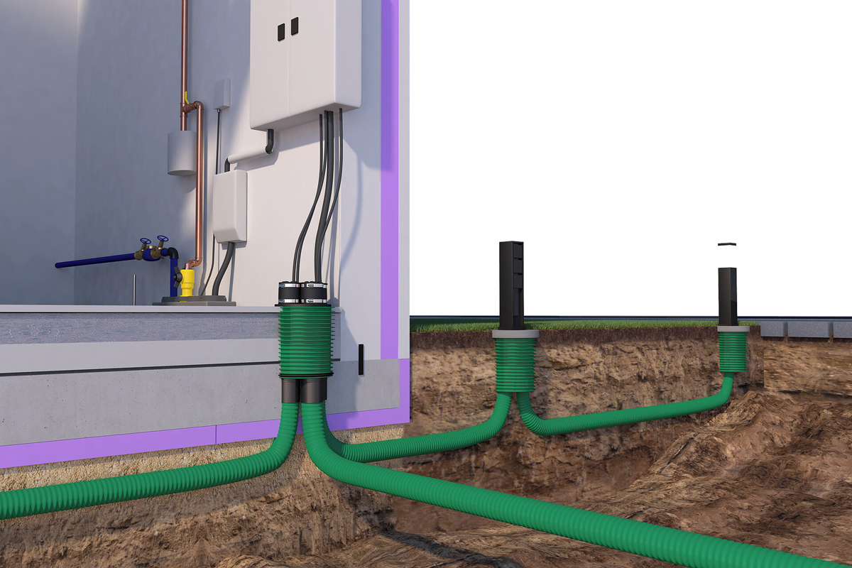 Voraussetzung dafür ist immer eine Versorgung mit Strom: Genau hier setzt das »Etgar«-System von Hauff-Technik an. Dafür, wie Versorgungsleitungen fachgerecht und dicht aus dem Gebäude geführt und zuverlässig auf dem Grundstück verteilt werden können, gab es bislang noch keinen Standard. Mit »Etgar« ändert sich das. Und damit auch die Art und Weise, wie und wann die Nutzer ihren Garten gestalten können.