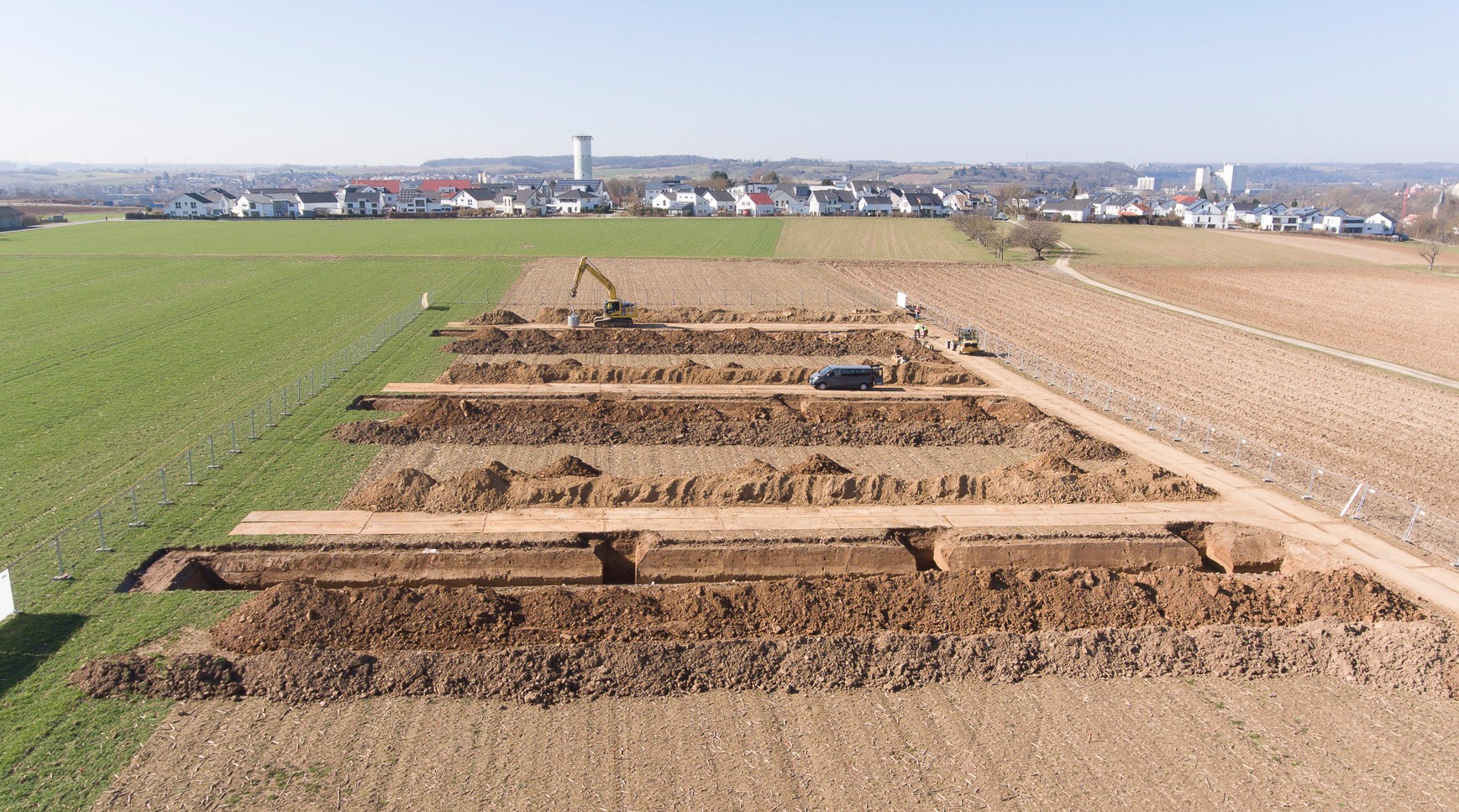 Im Bad Friedrichshaller Ortsteil Kochendorf befindet sich das erste von insgesamt vier durch TransnetBW errichteter Felduntersuchungsflächen, die nahe des geplanten SuedLink Leitungsverlaufs gebaut werden. Die Untersuchungsfläche je Standort entspricht mit 0,6 Hektar in etwa der Größe eines Fußballfelds. In einem Zeitraum von zirka vier Jahren wird dieses Feld von dem Bewirtschafter in der üblichen Fruchtfolge mit bearbeitet. Innerhalb dieser Untersuchungsfläche befinden sich drei Kabelgräben. Der Bettungssand wurde dafür per Sattelzug aus dem Dettelbacher Werk angeliefert und mit dem Radlader zu den Gräben transportiert. In die Gräben kommt zuerst eine etwa 20 Zentimeter hohe Schicht des Bettungsmaterials. Nach dem Verdichten konnten die Heizrohre zur Simulation der Erdkabel verlegt werden. Dann folgt wieder eine zirka 45 Zentimeter hohe Schicht des Bettungssands, letztlich wird der Graben mit Feldboden wieder verfüllt. Insgesamt wurden für das Feld 160 Tonnen ThermoGrit 2.0 genutzt. Ingo Harings, Leiter Qualität der Heidelberger Sand und Kies GmbH, erklärt: „Wir arbeiten sehr eng mit TransnetBW bei diesem Projekt zusammen. Es war das erste Mal, dass wir diesen Typ Bettungssand in der Praxis angewendet haben und es hat alles sehr gut funktioniert.“