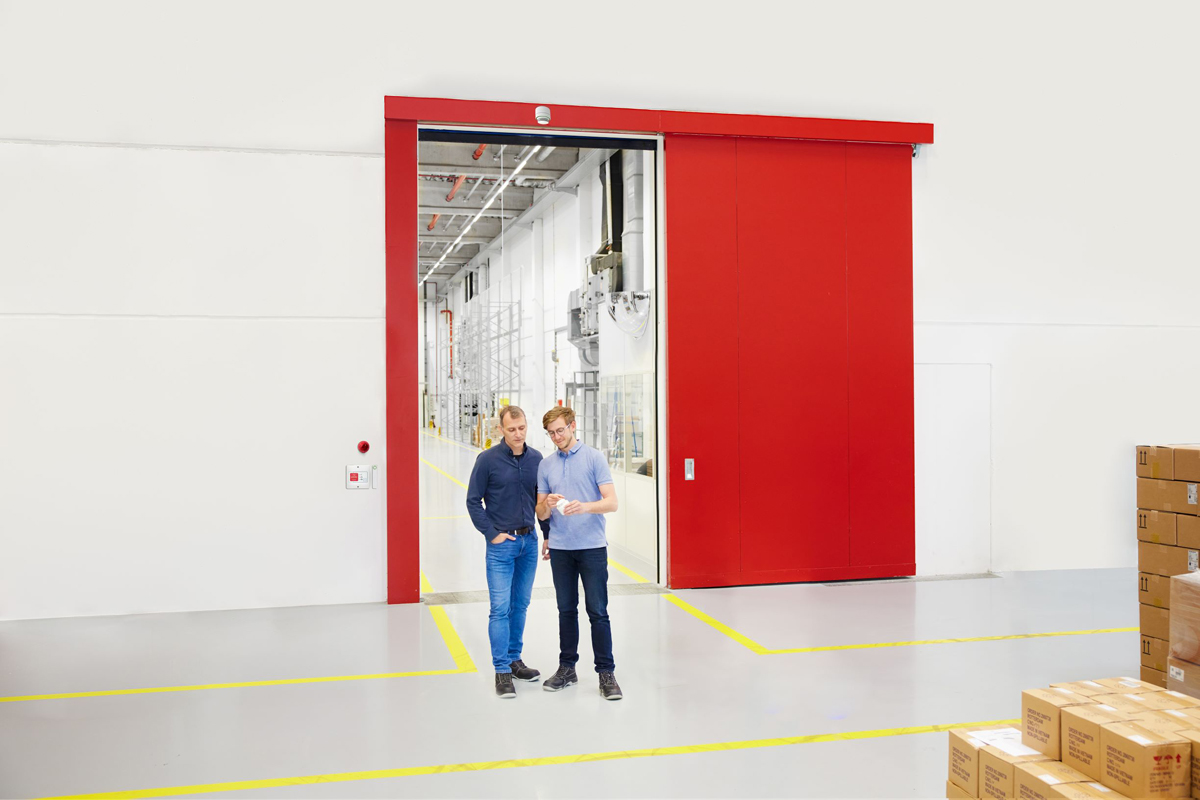 Das »Funksystem 155 F« kann sowohl in Neu- als auch in Bestandsanlagen eingesetzt werden. »Bestehende Brandschutztüren oder -tore damit nachzurüsten ist denkbar einfach, weil es zu allen relevanten Herstellerzulassungen, Bauartgenehmigungen und gängigen drahtgebundenen Systemen passt«, erklärt Winter. Das System kann entweder als Erweiterung einer leitungsvernetzten Feststellanlage oder als reine Funkversion verwendet werden. Seine Funktechnologie arbeitet über zwei Funkfrequenzbänder mit 433 MHz und 868 MHz und jeweils mehreren Sendekanälen. So erreicht es bis zu 20 m Reichweite im Gebäude und kann auf diese Weise auch schwer zugängliche Areale schützen. Störeinflüsse kann das Funksystem intelligent kompensieren.