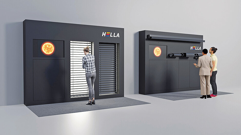 Die Technologie zur digitalen Steuerung der Erlebniswelt ist eine Entwicklung der Hella-eigenen Abteilung Automation und Steuerungstechnik. Vor rund zehn Jahren hat Hella die Steuerung »Onyx« auf den Markt gebracht und seither stets weiterentwickelt. Auf der R+T Messe wurden die beiden neuen Sensoren »Onyx.Tag Sun« und »Onyx.Tag Temperature« vorgestellt. Mit den dezenten und eleganten Sensoren – sie messen nur 4 mal 4 cm – lassen sich verschiedene Automationen ganz einfach mit den »Onyx«- Steuergeräten kombinieren.