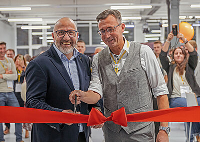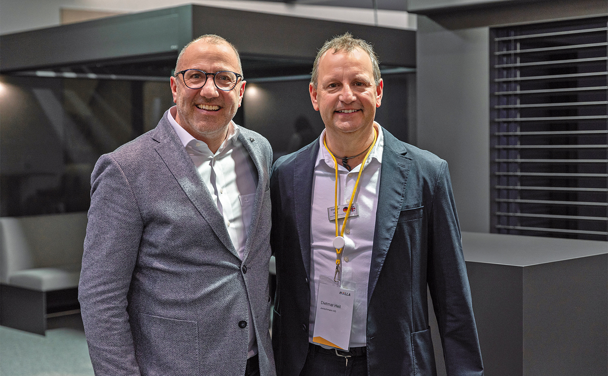 Andreas Kraler, geschäftsführender Gesellschafter der Hella Gruppe, und Dietmar Heil, Inhaber von Gluetex und Jentschmann, beim exklusiven Presse- Event bei der Weltleitmesse R+T in Stuttgart.