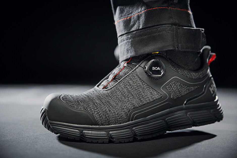 In diesem Frühjahr / Sommer erweitert Helly Hansen zwei seiner führenden Workwear Konzepte mit neuer Footwear und präsentiert den »Kensington Low BOA S3« sowie den »Manchester Mid S3«. Der »Kensington Low BOA« kommt mit einer HH Dual-Stride Zwischensohle, welche EVA und eTPU kombiniert und somit für gute Polsterung, Stabilität und Energie-Rückgabe bei jedem Schritt sorgen soll – und zudem sicherstellt, dass der Komfort des Trägers auch an langen Arbeitstagen erhalten bleibt. Außerdem verfügt der Schuh über eine »Helly Grip Rubber« Außensohle für gute Bodenhaftung sowie eine moderne Strick-Oberfläche und geformte TPU Bedeckungen. Durch zusätzlichen metallfreien Schutz vor dem Eindringen von Nägeln, ein BOA Passform-System für den richtigen Sitz und reflektierende Details ist der Schuh vielseitig und sicher, sowohl während als auch nach der Arbeit.