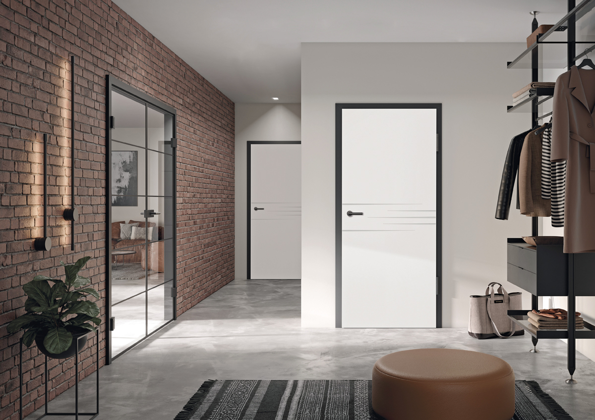 Die aktuell angesagte Sprossenoptik im Fensterbereich hat Herholz für weitere Türen-Highlights entlehnt, bei diesen laufen horizontale und vertikale Fräsungen aufeinander zu, um die wohnliche Atmosphäre des Landhausstils in Innenräume zu transportieren. »DarkLines 25« werten mit ihren dezenten Fräsungen und individuellem Sprossenlook so jedes hochwertige Ambiente auf.