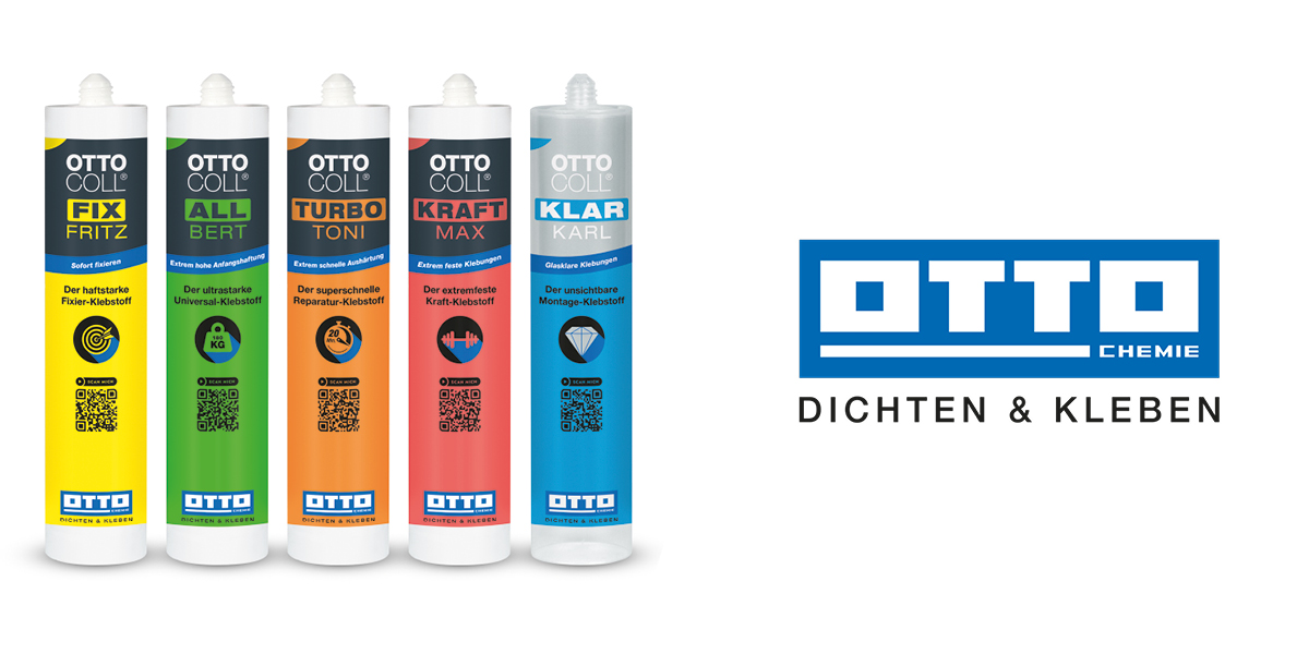 »KraftMax«, »FixFritz«, »AllBert«, »KlarKarl« und »TurboToni«: Die fünf Profi-Klebstoffe von Otto-Chemie, einem nach eigenen Angaben führenden europäischen Hersteller von Dicht- und Klebstoffen, verfügen jeweils über ganz spezielle Verarbeitungs- und Klebeeigenschaften. Damit sind sie laut Hersteller Spezialisten für unterschiedlichste Anwendungen bei Montage, Ausbau, Renovierung und Reparatur.