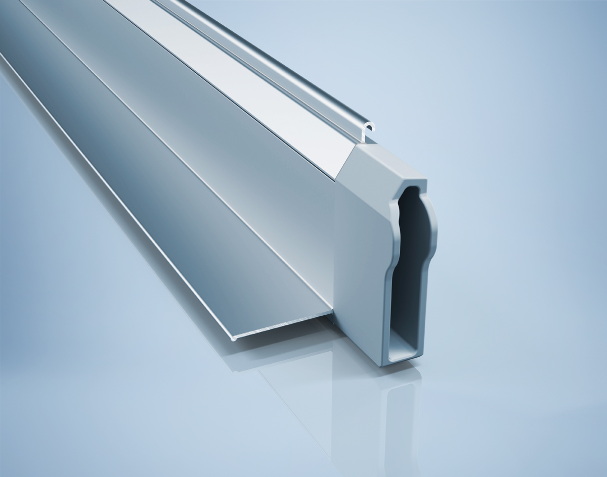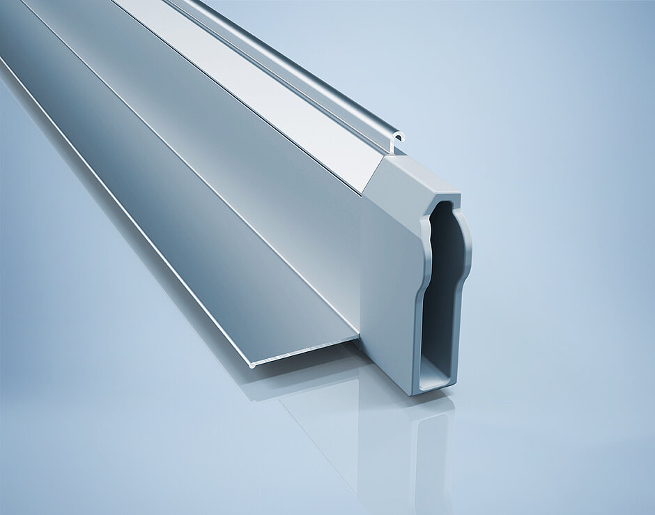 Die zweiteiligen Führungsschienen »heroal DRP« sind in den Varianten »HTF« (26 mm Führungsschieneneinstand) und »HTF 40« (40 mm Führungsschieneneinstand) erhältlich. Sie bestehen aus einem Basisprofil mit klipsbarer Deckschale und können sowohl auf der Wand (ohne die Anforderung der Schlagregendichtheit) als auch auf dem Blendrahmen montiert werden. Durch die Verschraubung innerhalb des Basisprofils sind keine Schrauben sichtbar. Die für beide Basisprofile geeignete Deckschale ist symmetrisch aufgebaut und lässt sich prozesssicher einklipsen. Die zweiteiligen Führungsschienen sind schlagregendicht, kompatibel mit aktuellen Blendkappen sowie Kastensystemen und unterstützen dank ihres zweiteiligen Aufbaus einen einfachen, effizienten Zugang im Wartungsfall.