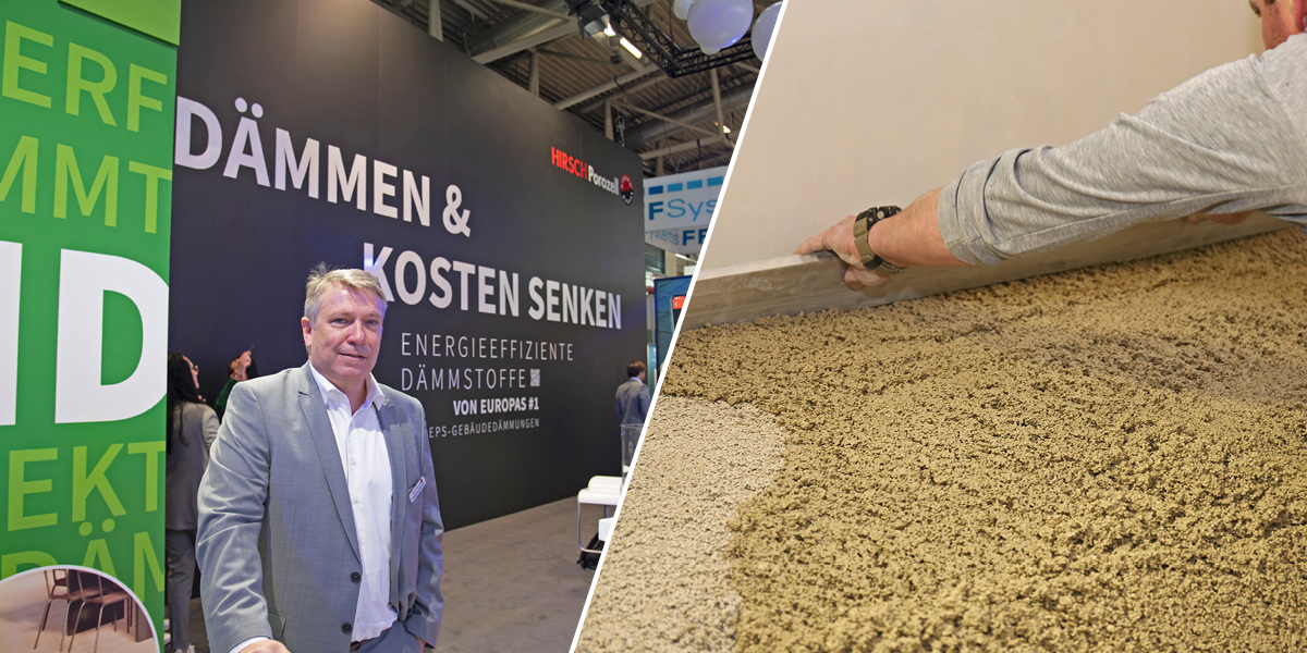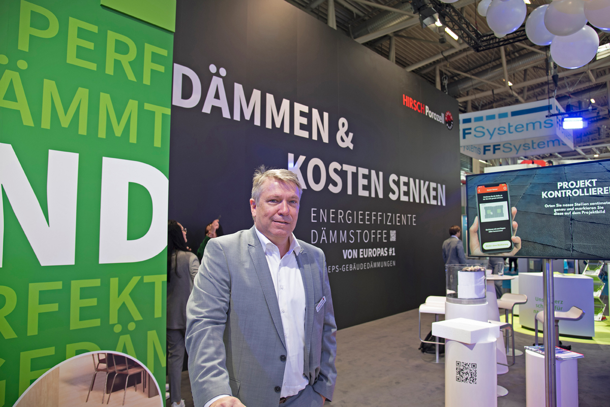 Zu diesem Ansatz gehören nach Aussage von Hirsch-Porozell- Geschäftsführer Christian Winter insbesondere die Themen Recycling und erneuerbare Energien. Es werden EPS-Produkte mit bis zu 20 Prozent Recyclinganteil hergestellt. Die Energie für die Produktion wird zu Teilen durch PV-Anlagen an den Produktionsstätten gewonnen. Zu den Produkten der neueren Generation auf der Messe gehörte u. a. die modifizierte »Ilos 2.0«-Flachdach-Dämmplatte mit Leckargeortungsfunktion.