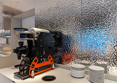 Das innenarchitektonische Konzept des Mehrgenerationen-Begegnungshauses wurde von Poschmann Design entwickelt. Verwendet wurden dabei Echtmetalldekore von Homapal, die sich durch den wiederholten Einsatz wie ein roter Faden durch die Räumlichkeiten ziehen, so der Hersteller. Das Produkt »500 / 491 Messing-glatt Antik« findet sich beispielsweise vollflächig horizontal und vertikal am Tresen und den Raumteilern in den Gemeinschaftsräumen wieder. Das handgefertigte Design schaffe dadurch einen wiederkehrenden Blickfang im Zusammenspiel mit dem verwendeten Holz, den bepflanzten Wänden sowie den Textilien und Tapeten in verschiedenen Farben. Ebenfalls erwähnenswert sei die Magnethaftplatte »8225 Steingrau matt«, mit der die Fronten der Raumteiler ausgestattet sind: So könne man einfach und sauber Notizen oder Infoblätter aushängen. J