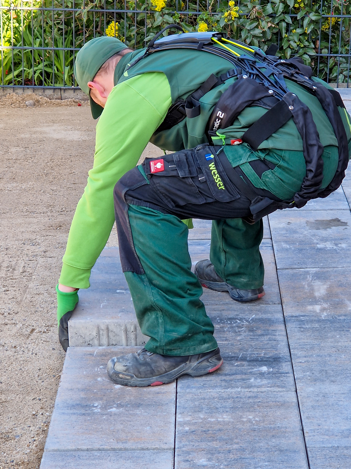 Seine Stärken zeigt das Exoskelett vor allem dort, wo schwere körperliche Arbeit unvermeidlich ist: Beim Pflastern entlastet es die Wirbelsäule, im Straßenbau erleichtert es die Bedienung schwerer Maschinen und den Materialtransport, im Tiefbau reduziert es die Belastung bei Aushub- und Rohrverlegearbeiten. Dank seines schmalen Designs eignet es sich auch für enge Arbeitsumgebungen. Darüber hinaus unterstützt es beim Heben und Tragen schwerer Lasten, fördert eine ergonomische Haltung bei gebückter Arbeit und ermöglicht längeres, ermüdungsfreies Arbeiten.