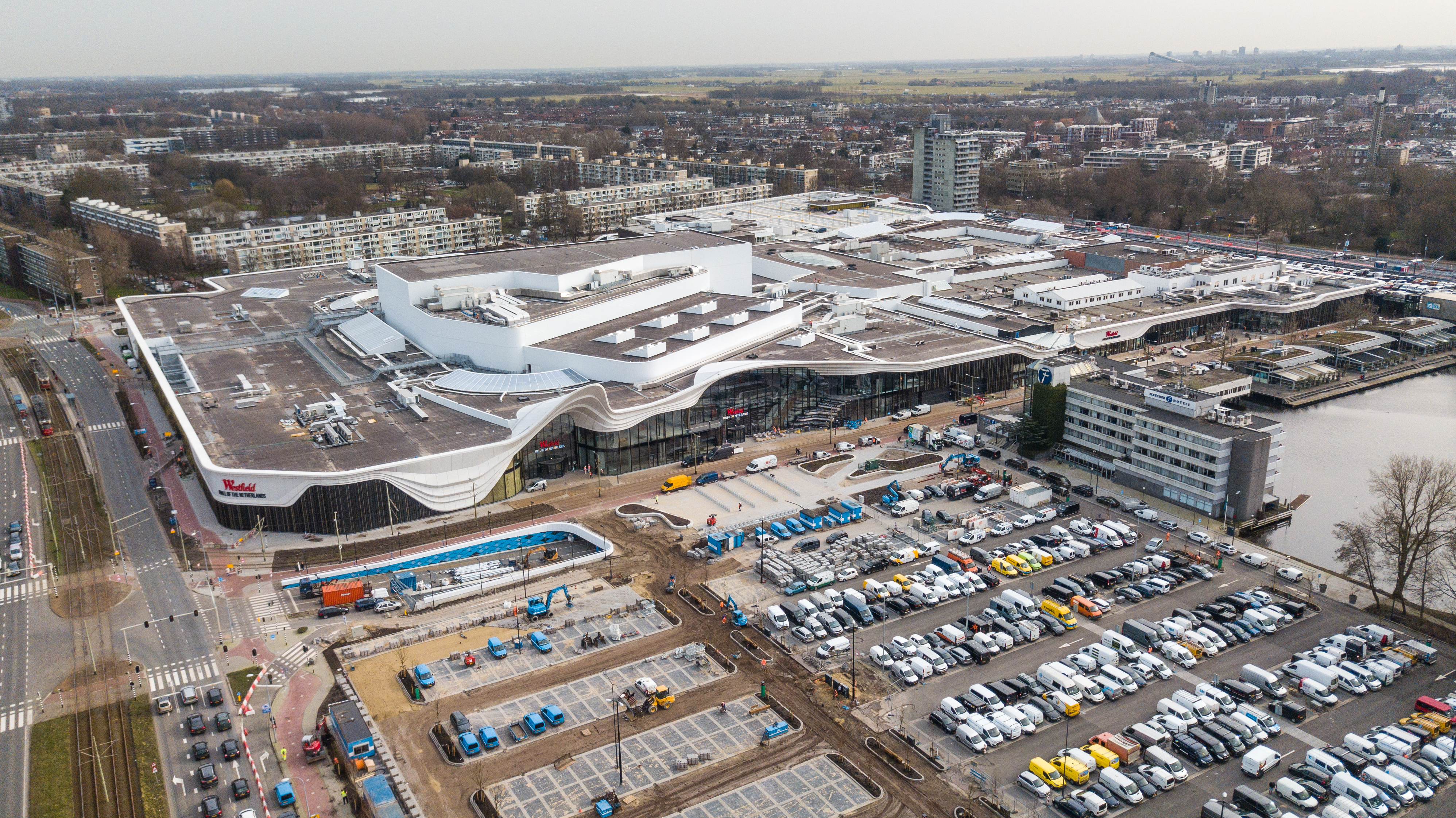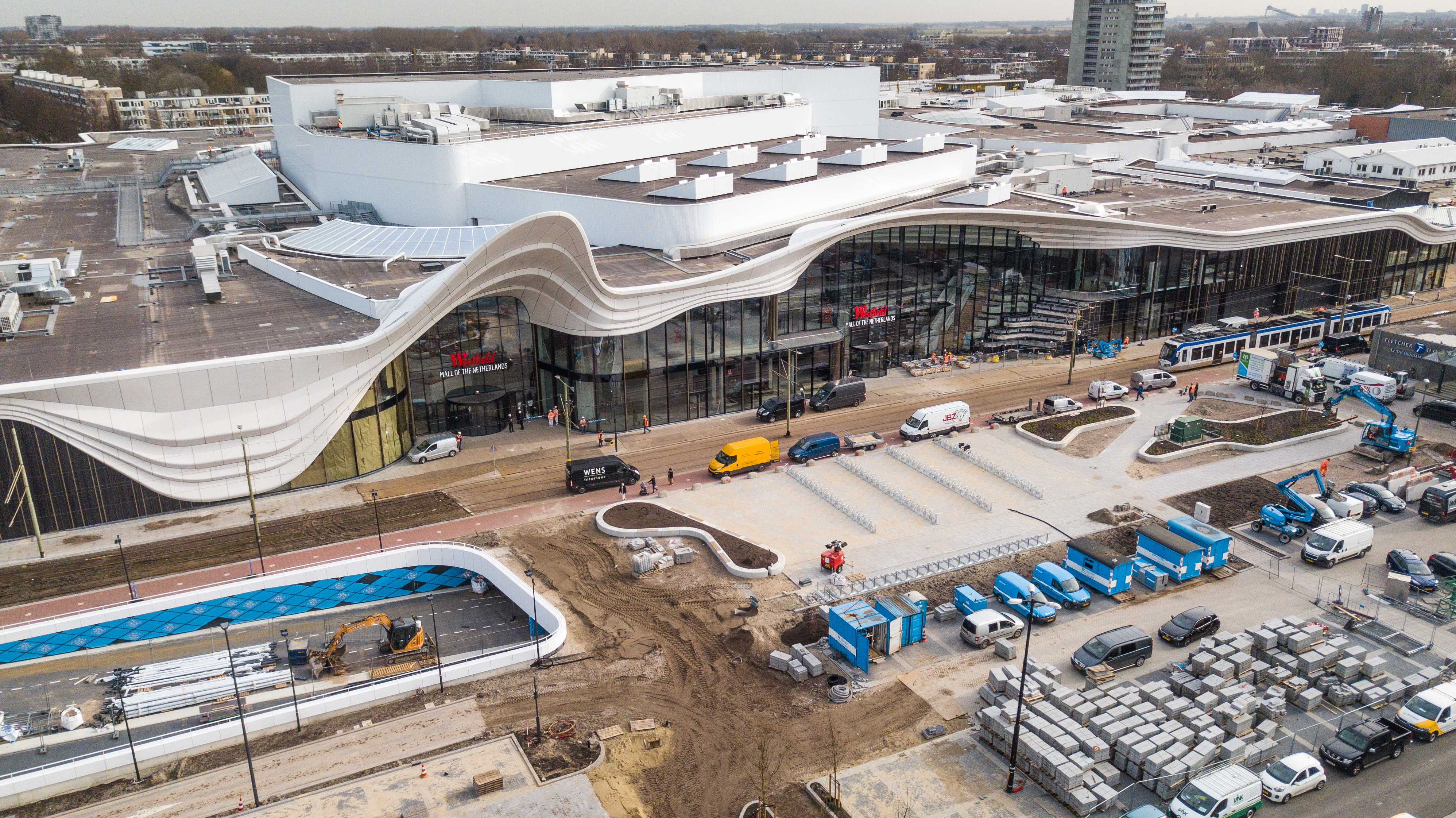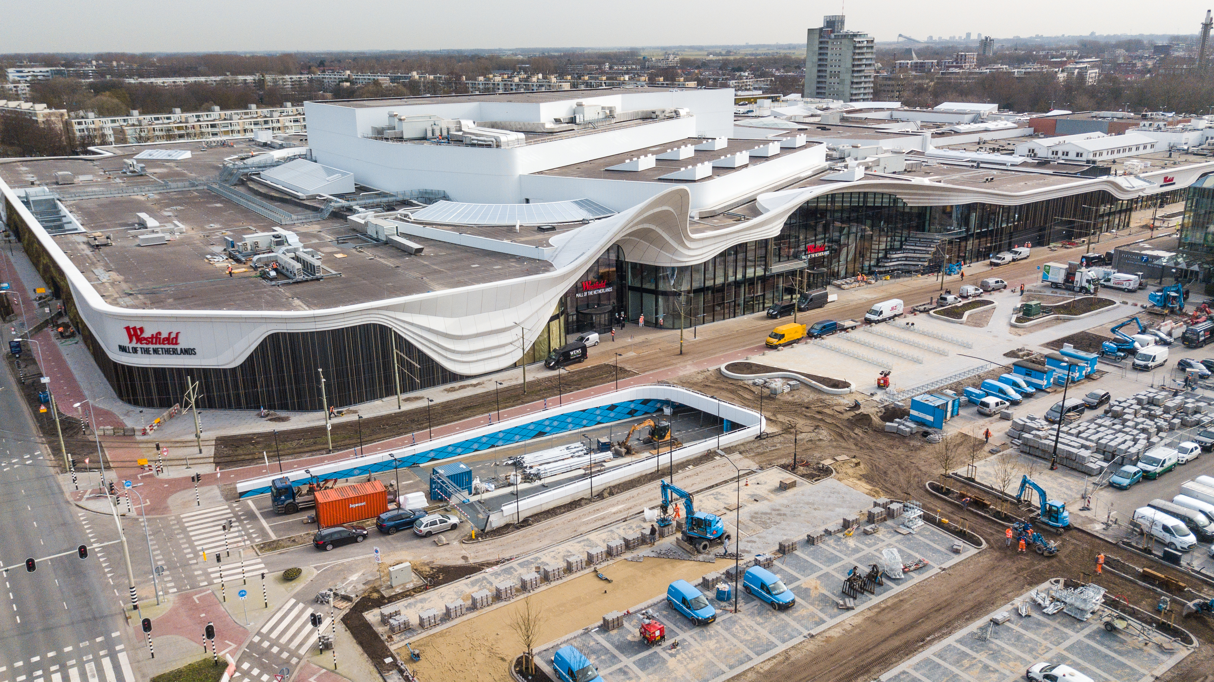 „Das bereits vorhandene Einkaufszentrum bestand aus vielen verschiedenen Blöcken mit unterschiedlichen Charakteristiken. Unsere Vision war es, diese zu vereinen, indem die Fassade sanft darüber gelegt wird, wie eine zweite Haut“, erklärt Architektin Charlotte Griffioen von MSVA Architects. In einem Zeitraum von sieben Jahren wurden 30 % des bestehenden Einkaufszentrums renoviert und 70 % neu gebaut. Mit 200.000 Quadratmetern Fläche hat die Mall of the Netherlands eine große, organische Form. Sie wurde offiziell im März 2021 eröffnet und bietet Platz für 300 Geschäfte, Restaurants und Unterhaltungslokale. Mit ihren ikonischen 7,5 Meter hohen Schaufenstern ist die Mall von innen ebenso beeindruckend wie von außen.