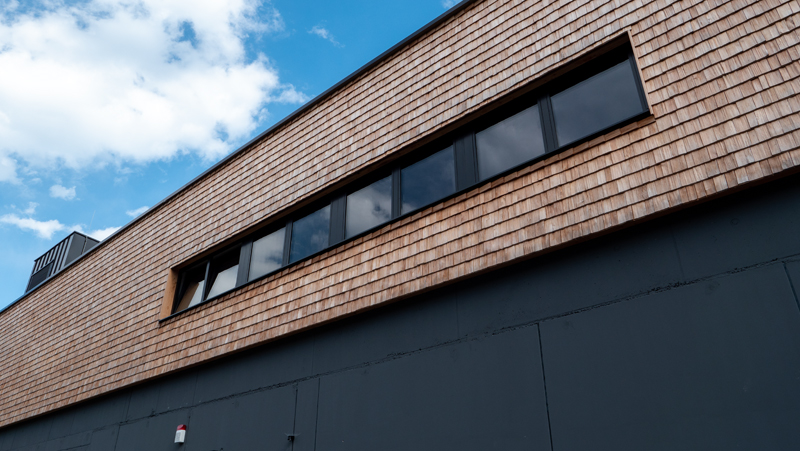 Sowohl im Innen- als auch im Außenbereich wurden die Brandschutzelemente in dem Aluminiumprofilsystem HUECK Lava 77-30 realisiert. Die wärmegedämmten Brandschutztüren erhielten zusätzlich eine Panikfunktion. „Die Entscheidung das Objekt mit HUECK auszuführen ist sicherlich in der Produktqualität, in der Servicequalität und in der Lieferfähigkeit begründet. Dabei hat die Abstimmung mit dem HUECK Team wie gewohnt sehr gut funktioniert. Seit über 40 Jahren ist die Firma HUECK unser Systempartner im Aluminiumbereich. Ich glaube das spricht schon für sich“, so Otto Guggenbichler.