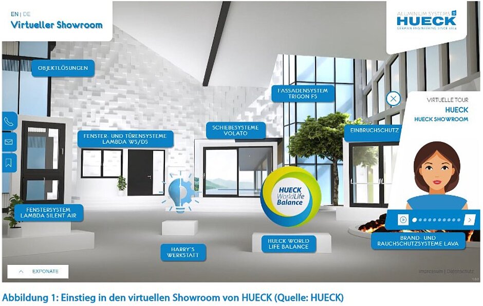 Der virtuelle HUECK Showroom ist erreichbar unter: www.hueck-showroom.com