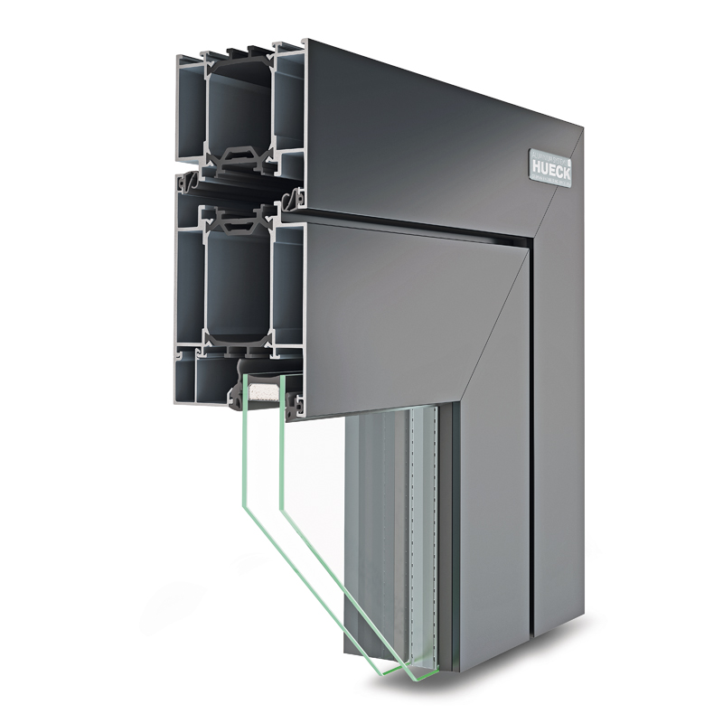 Der Systembaukasten »Hueck Lambda DS 075« umfasst drei Varianten von Aluminium-Türprofilen mit 75 mm Bautiefe. Durch das Hueck-Prinzip der Gleichteileverwendung lässt sich das identische Aluminiumprofil mit unterschiedlichen dämmenden Systemkomponenten bestücken, um verschiedenen thermischen Anforderungen an eine Tür gerecht zu werden. Auch durch die Nutzung identischer Beschläge für jede Variante werden Lagerkosten reduziert und die Flexibilität erhöht.