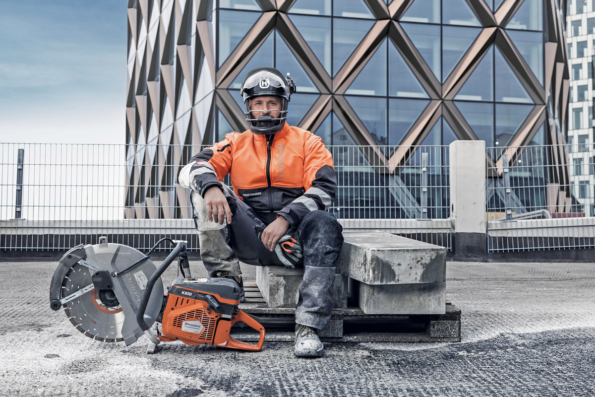 Trotz professioneller Handhabung eines handgeführten Trennschleifers können unvorhergesehene Ereignisse, wie plötzliches Einklemmen der Trennscheibe oder deren abruptes Abbremsen durch starken Reibungskontakt, den Nutzer gefährden. Die neue »SmartGuard«-Schutzausrüstung von Husqvarna, bestehend aus Jacke, Helm und Trennscheibenschutz, arbeitet als System zusammen, um die Schwere von Verletzungen im Falle eines Rückschlags des Trennschleifers zu minimieren: Der »SmartGuard«-Trennscheibenschutz deckt den kritischen Teil der rotierenden Scheibe ab, während der »SmartGuard«-Helm und die »SmartGuard«-Jacke den Kopf sowie besonders gefährdete Körperregionen schützen und so das Verletzungsrisiko verringern.