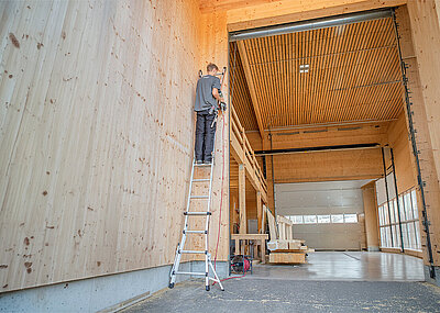 Die beidseitig begehbare Stufenstehleiter 8024 zeichnet sich vor allem durch ihre extrem robuste Bauweise aus. Damit ist sie geradezu prädestiniert für maximale Einsatzbedingungen in der Industrie. Das Treppenpodest 6884 eignet sich zudem ideal zur Bedienung und Wartung von Maschinen und Anlagen. Vielfach variabel einsetzbar ist darüber hinaus das Klappgerüst 8177, von dessen Vorteilen sich die Messebesucher ebenfalls ein detailliertes Bild machen können.