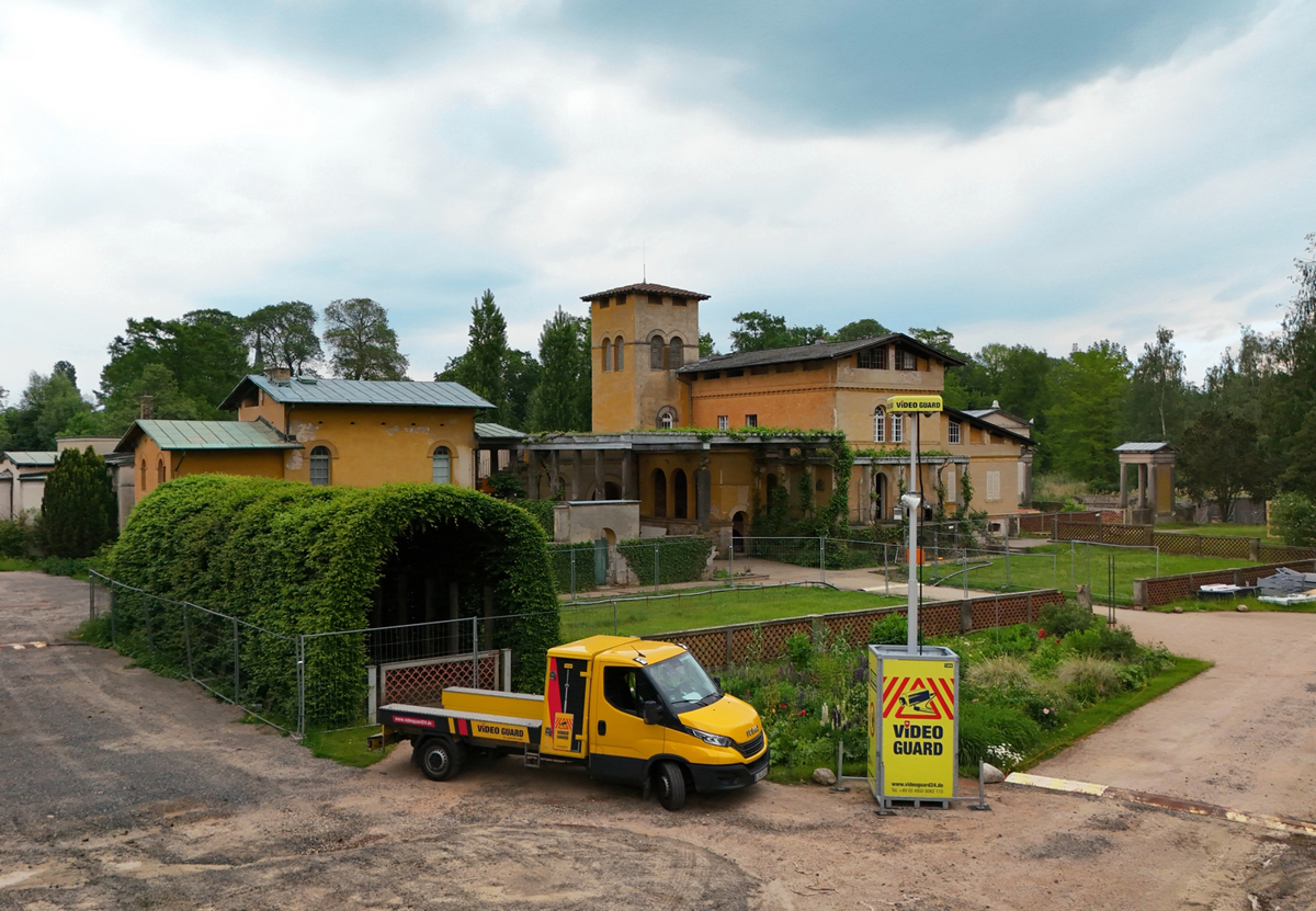 Mit dem Schloss Charlottenhof, einer großen Terrassenlage und Fontäne im Zentrum beeindruckt der rund 300 Hektar große Park Sanssouci in Potsdam jährlich viele Besucherinnen und Besucher aus aller Welt. Zu den architektonischen Highlights des Geländes zählen auch die Römischen Bäder, welche König Friedrich Wilhelm IV. ab 1829 erbauen ließ. Doch die Zeit hinterließ ihre Spuren an der Gebäudesubstanz, sodass derzeit umfangreiche Sanierungsarbeiten an den Römischen Bädern sowie an der dazugehörigen Gartenanlage durchgeführt werden. Damit sich die Gäste des Parks in Zukunft wieder an den Römischen Bädern erfreuen können, ist eine Grundinstandsetzung notwendig. Diese Restaurierung soll planmäßig im Jahr 2026 abgeschlossen sein. Damit die Arbeiten reibungslos verlaufen können und ein Schutz vor Diebstahl und Vandalismus gegeben ist, wird das Gelände durch hochmoderne Kameratechnik bewacht. Zum Einsatz kommt hier Video Guard.
