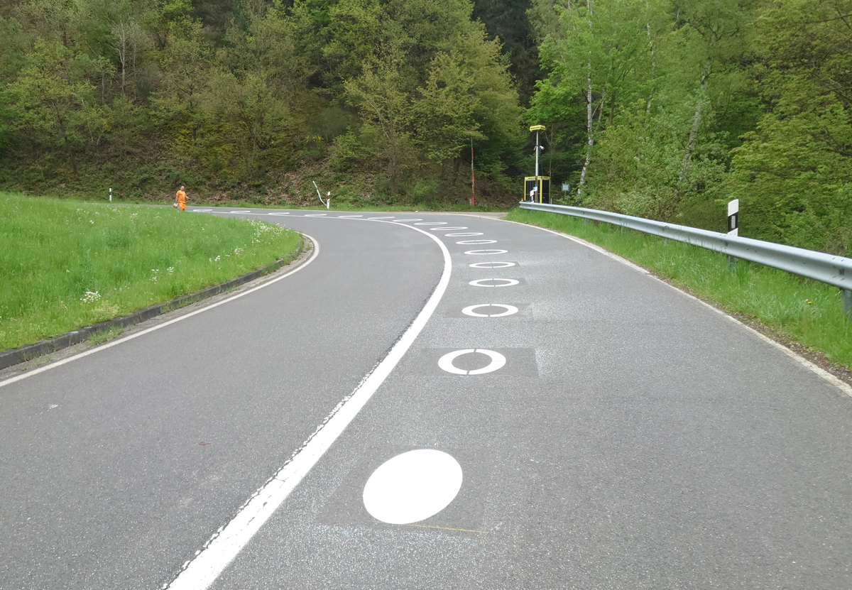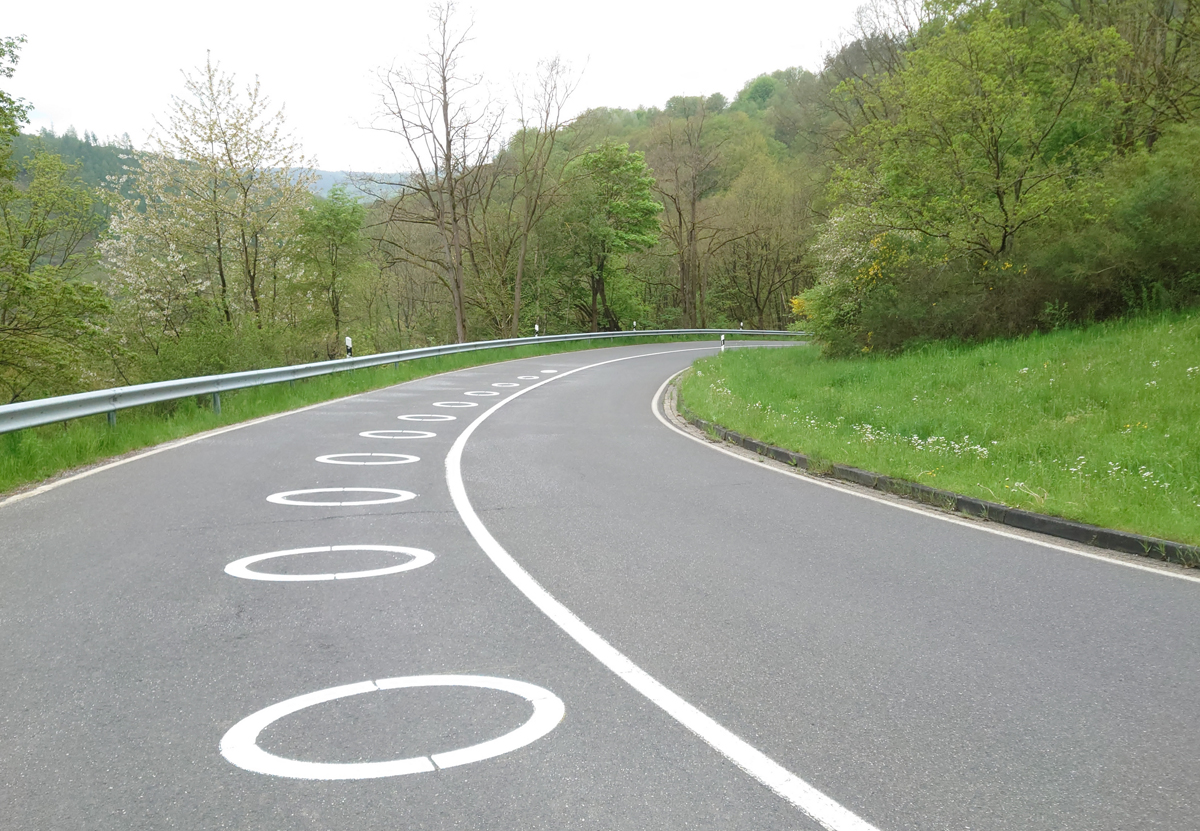 Die Panoramastraße zwischen Schmidt und Vossenack in der Nordeifel ist eine ehemalige Bergrennstrecke und bei Motorradfahrern beliebt. Oftmals wird die Strecke jedoch deutlich zu schnell befahren – mit teils schwerwiegenden Folgen. So ist nicht nur eine erhöhte Lärmbelastung ein Problem; viele Unfälle enden hier tödlich. Um die Sicherheit der Biker zu erhöhen, startet jetzt ein innovativer Verkehrsversuch mit speziellen ellipsenförmigen Markierungen. Sie sollen dabei helfen, die Aufmerksamkeit zu erhöhen und den Kurvenverlauf rechtzeitig zu erkennen.