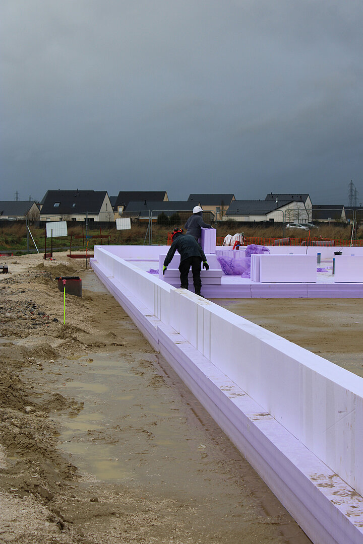 Selbst widrige Wetterbedingungen auf der Baustelle wie anhaltender Regen und ein Sturm wurden mit »Jackodur Atlas« erfolgreich gemeistert: Die Verlegung der 43 x 35 m großen Bodenplatte erfolgte innerhalb von nur vier bis fünf Tagen. Möglich wurde dies auch durch die enge Zusammenarbeit mit dem technischen Support-Team von Jackon Insulation by Bewi, das die Ausführung vor Ort begleitete. »Das Team von Jackon Insulation by Bewi hat uns auf der Baustelle fachlich optimal begleitet und unterstützt – das war ein echter Vorteil«, ergänzt Sacha Nouveau.