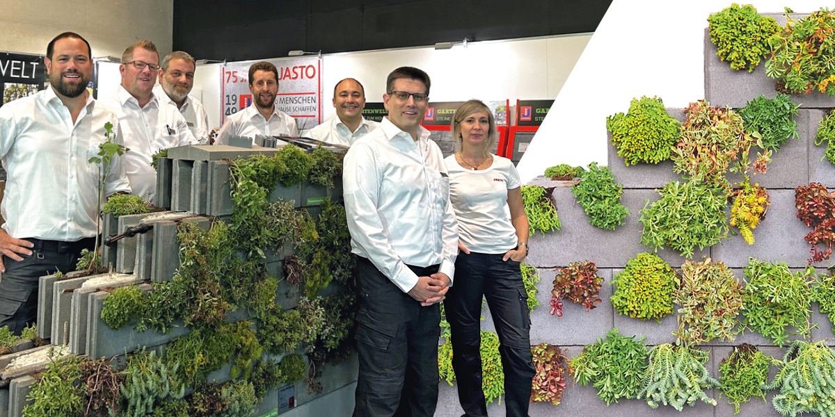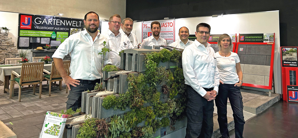 Neben der »Green Wall-Kombi« wird in Kürze auch die neue »Cavum«-Mauer verfügbar sein. Dabei handelt es sich um eine Mauer in Bruchsteinoptik. Sie besteht aus Hohlsteinen und spart dadurch Gewicht und Kosten ein. Da die »Cavum«-Mauer horizontal und vertikal armiert werden kann, eignet sie sich für größere Höhen als massive Vollsteinmauern. Weitere Neuheiten in der Jasto-Gartenwelt sind eine Variante der Burgmauer mit einer neuartigen Felsstruktur-Oberfläche, sowie das beliebte »Trendline«-Pflaster in einer gekollerten Variante.